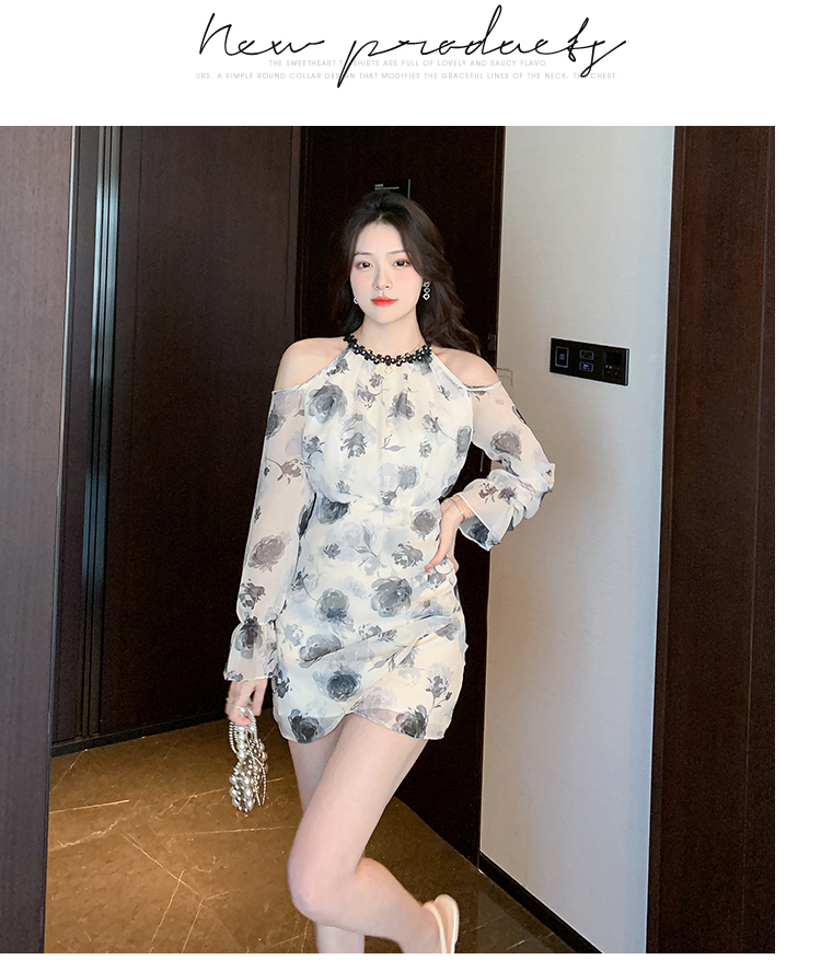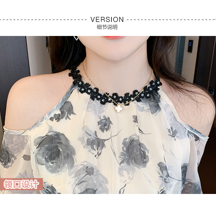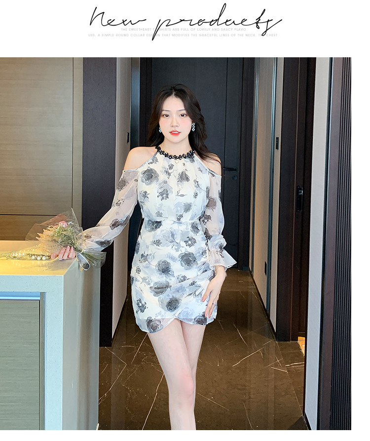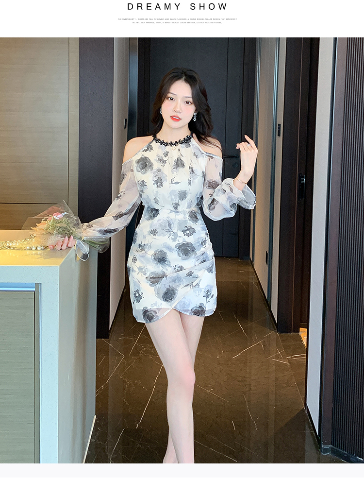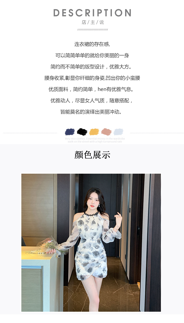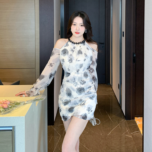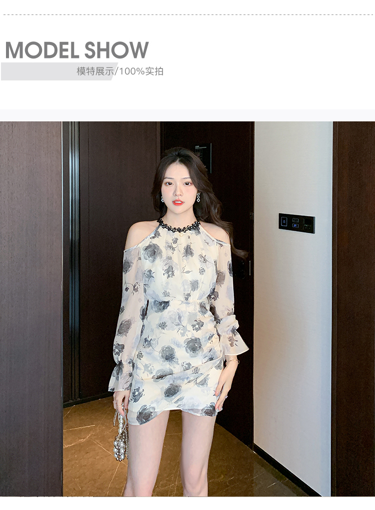 RM5255#夏季新款法式温柔露肩挂脖连衣裙防晒不规则扎染短裙