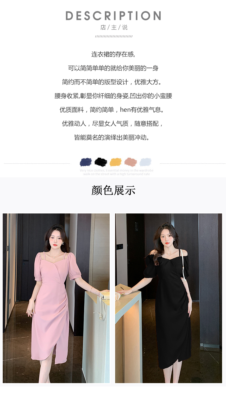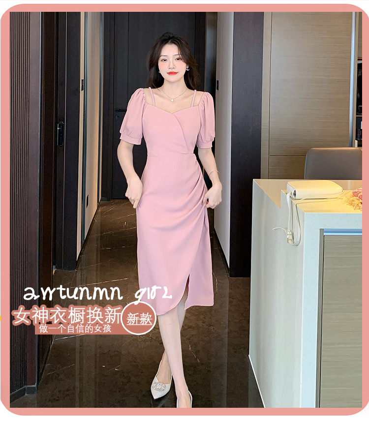 RM5257#夏季新款法式温柔轻熟风连衣裙气质开叉裙小个子