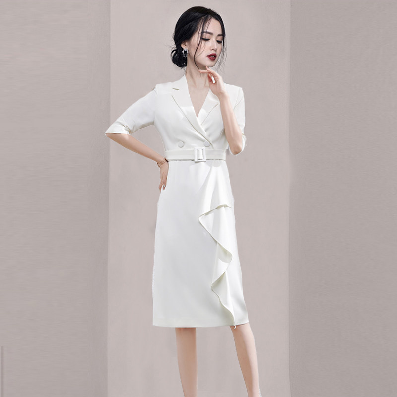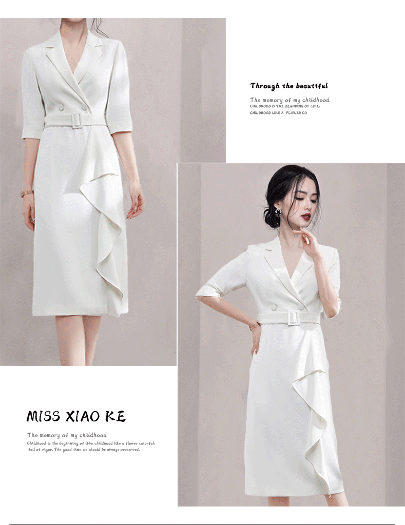RM5272#西装连衣裙女 夏季高级感气质职业装通勤腰带款七分袖