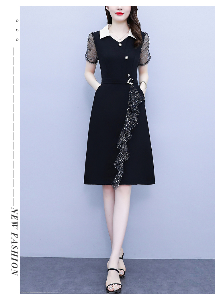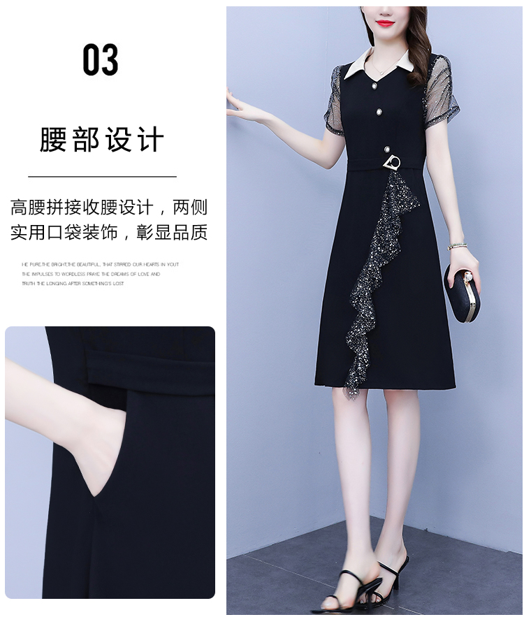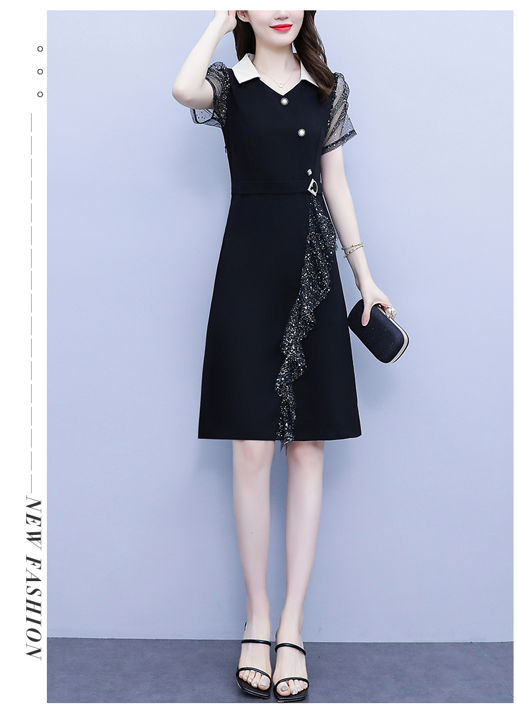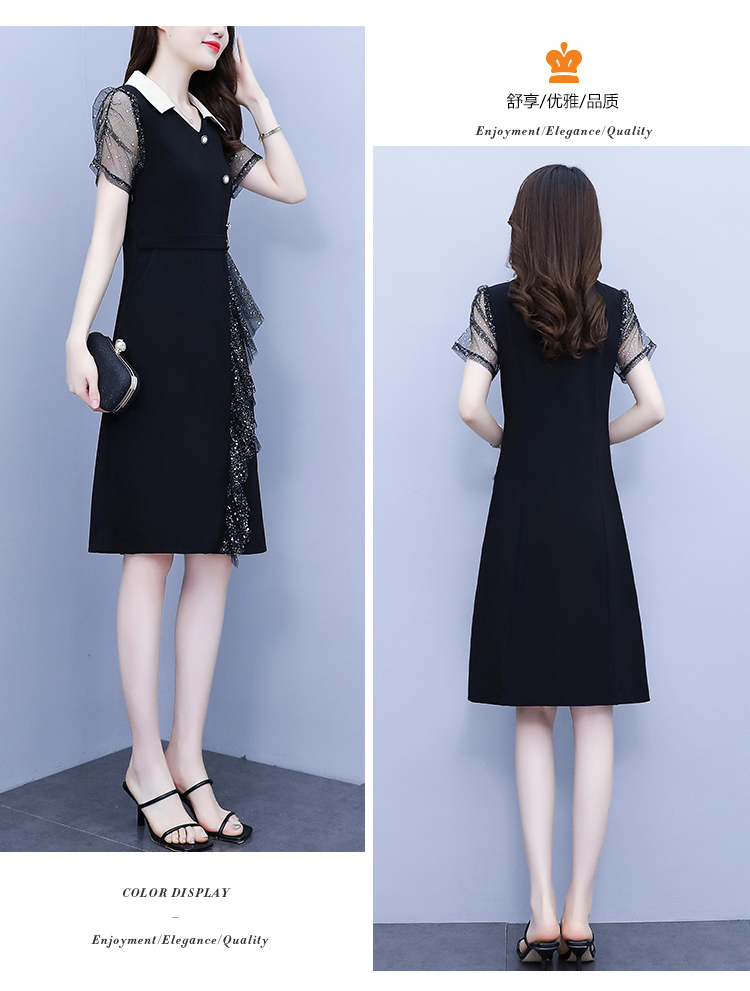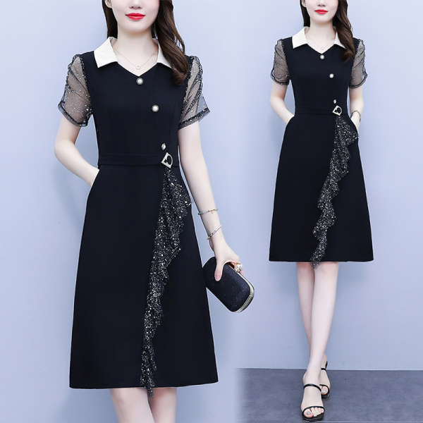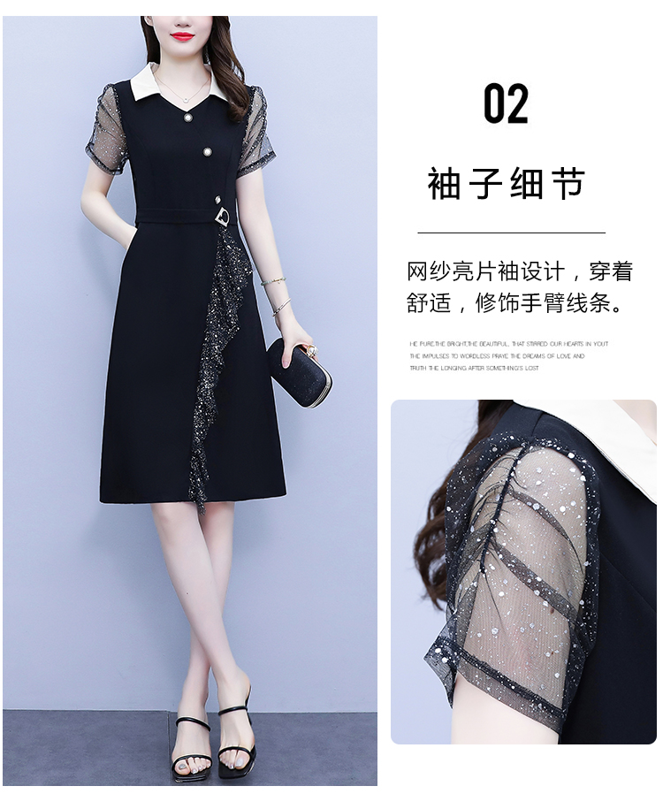 RM5075#大码女连衣裙2023夏新款显瘦小黑裙短袖高腰胖mm遮肉A字裙