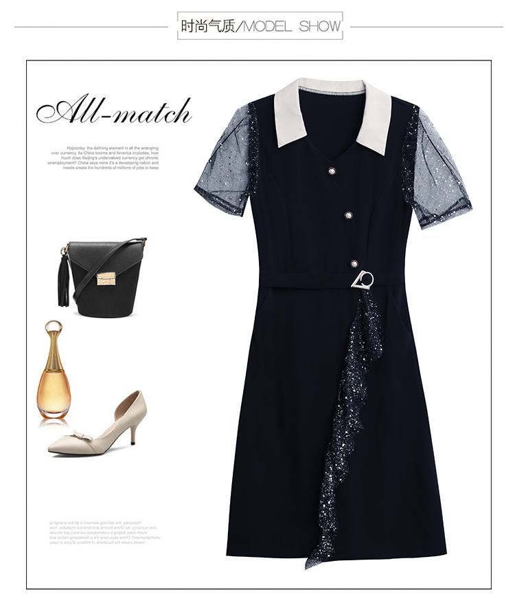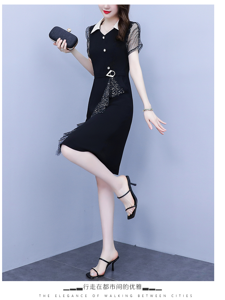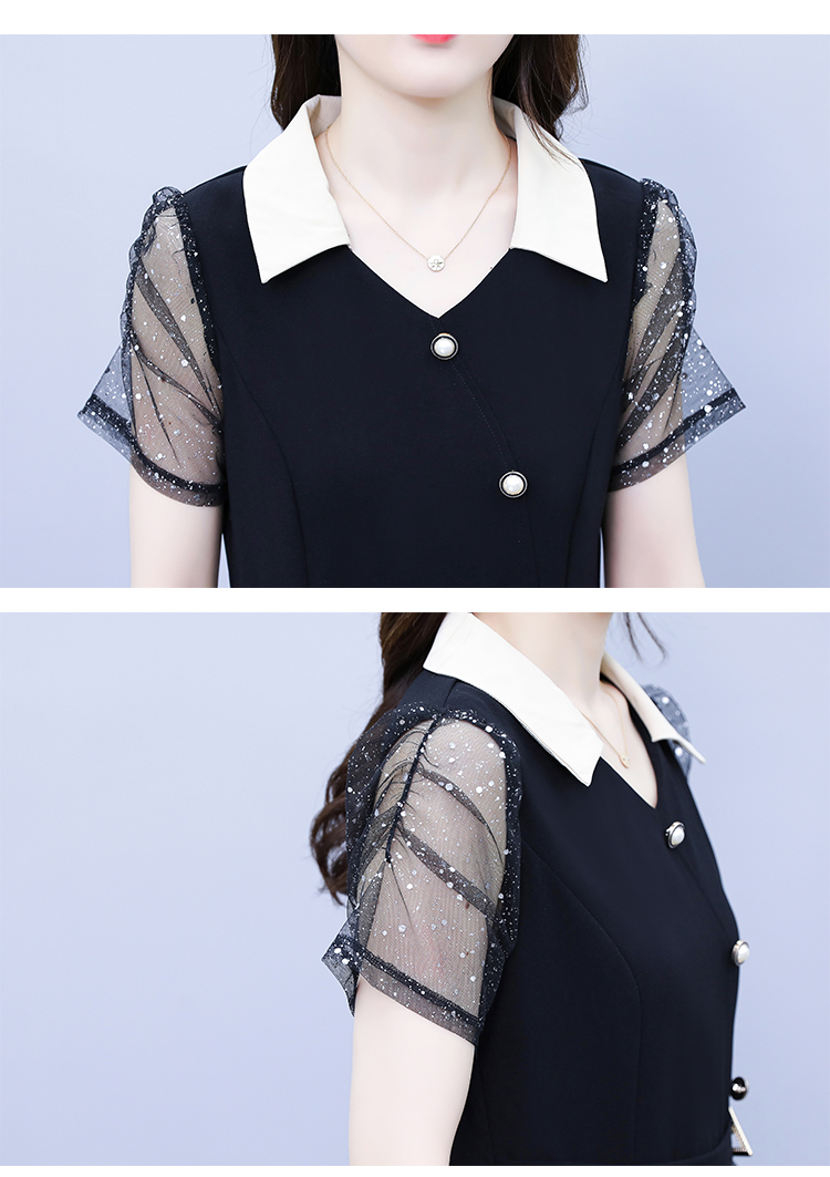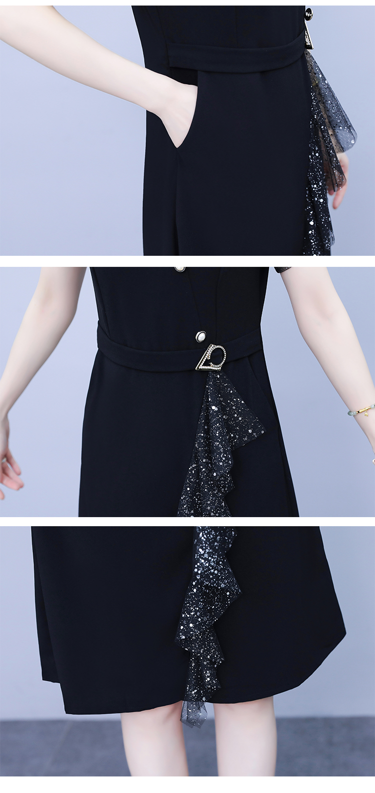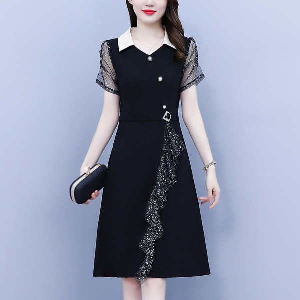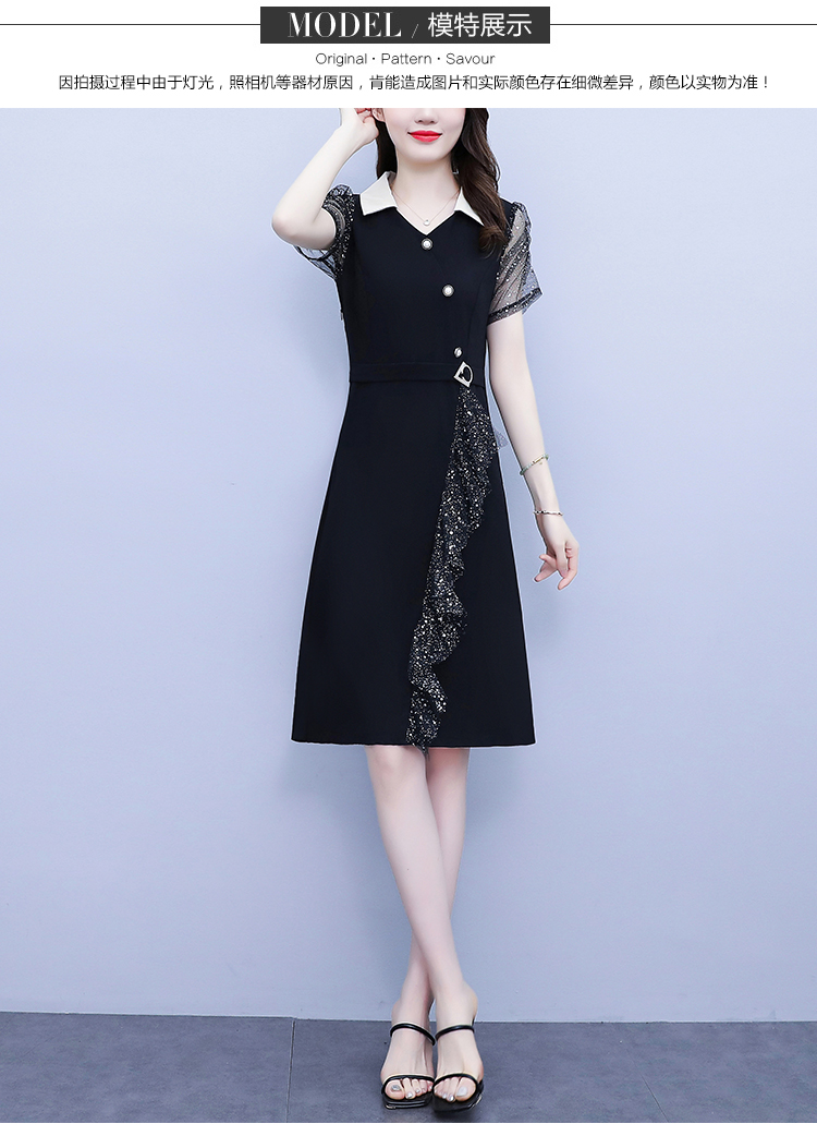 RM5075#大码女连衣裙2023夏新款显瘦小黑裙短袖高腰胖mm遮肉A字裙