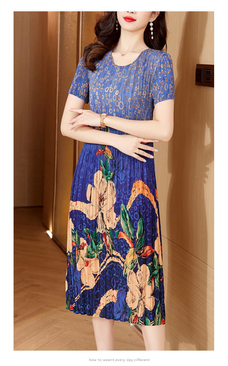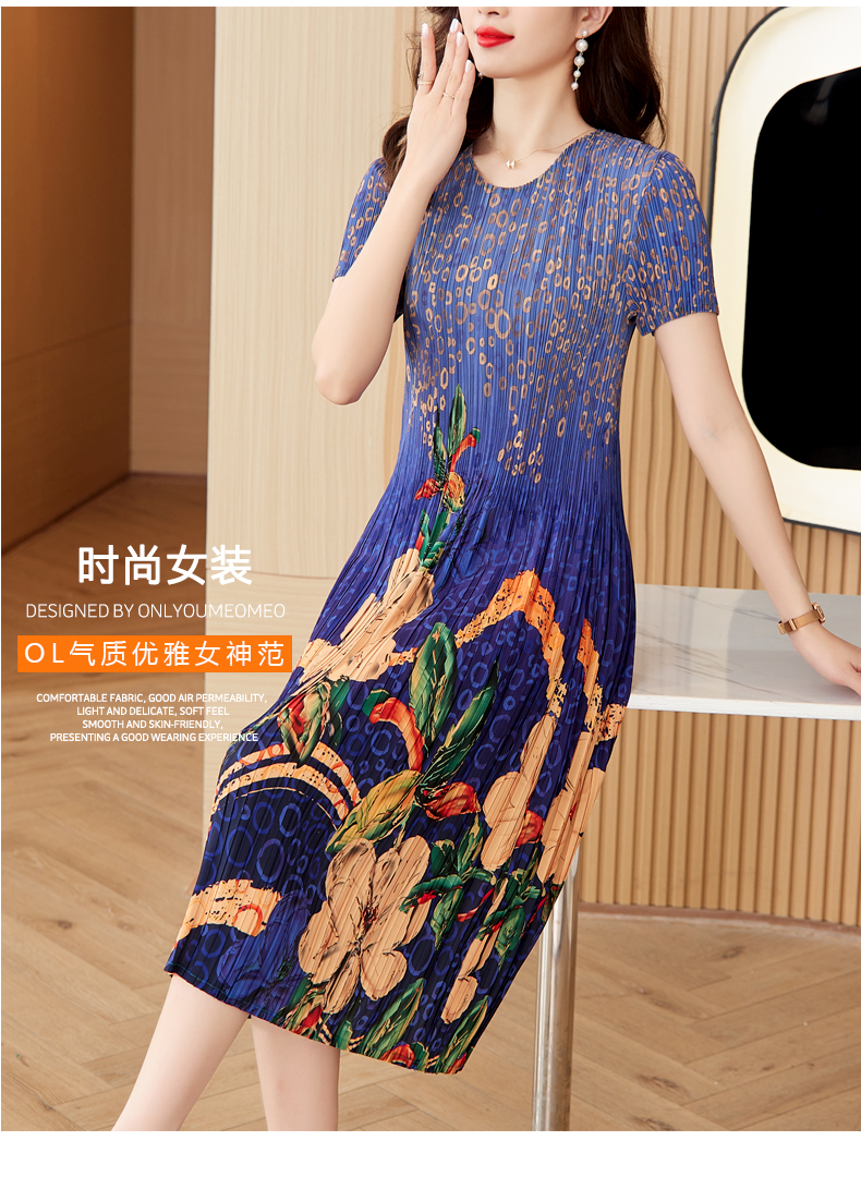 RM5144#小香风连衣裙2023夏季新款褶皱名媛修身显瘦中长款大码时尚百褶裙