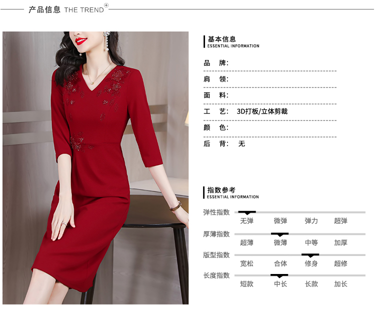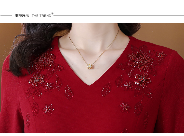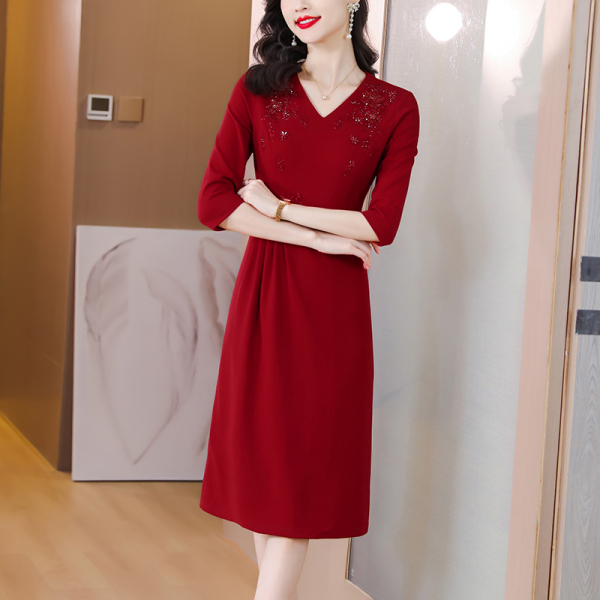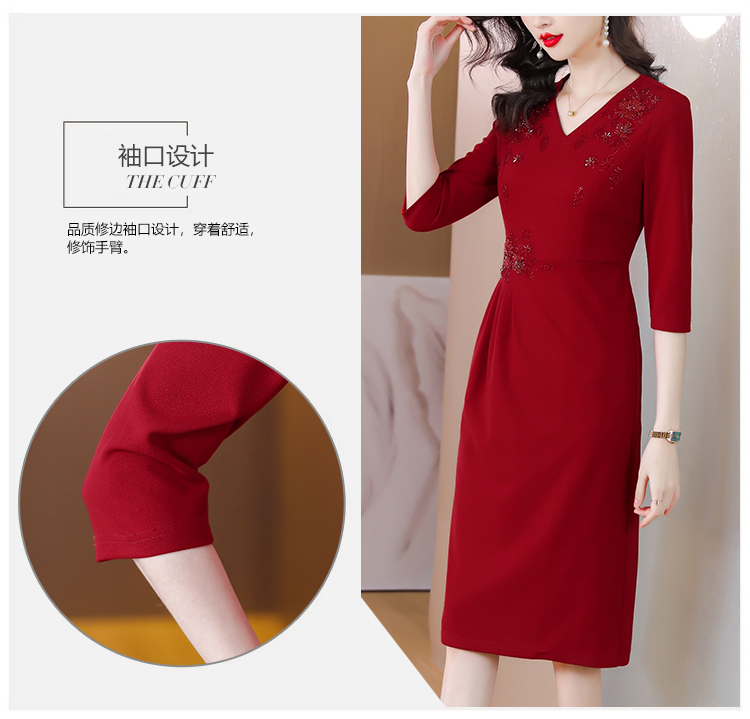 RM5160#婚宴妈妈礼服红色旗袍女春秋喜婆婆婚礼服平时可穿轻奢气质连衣裙