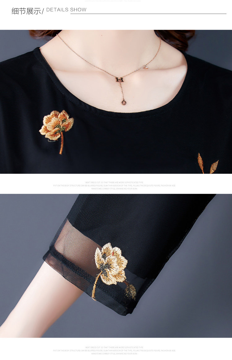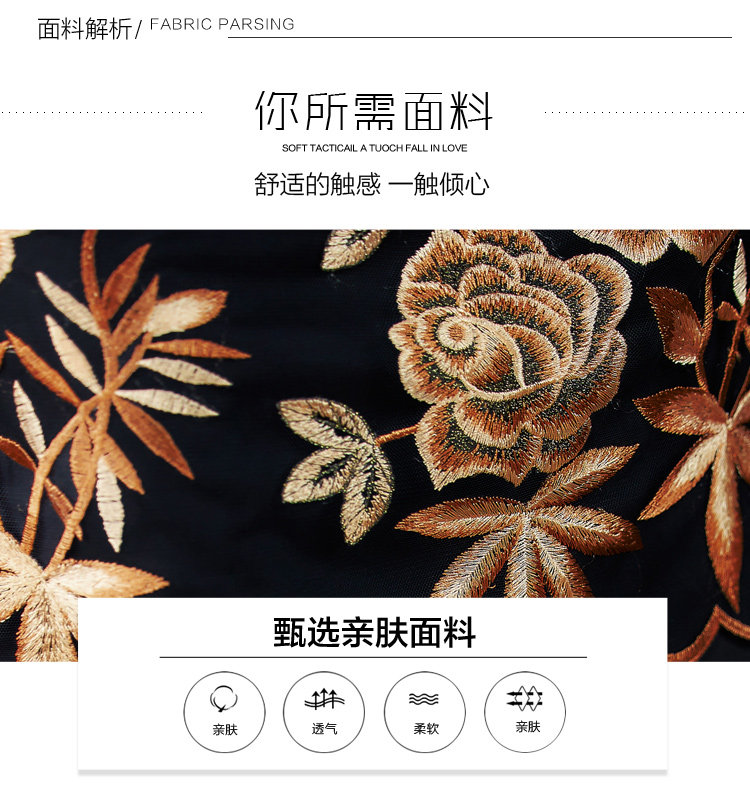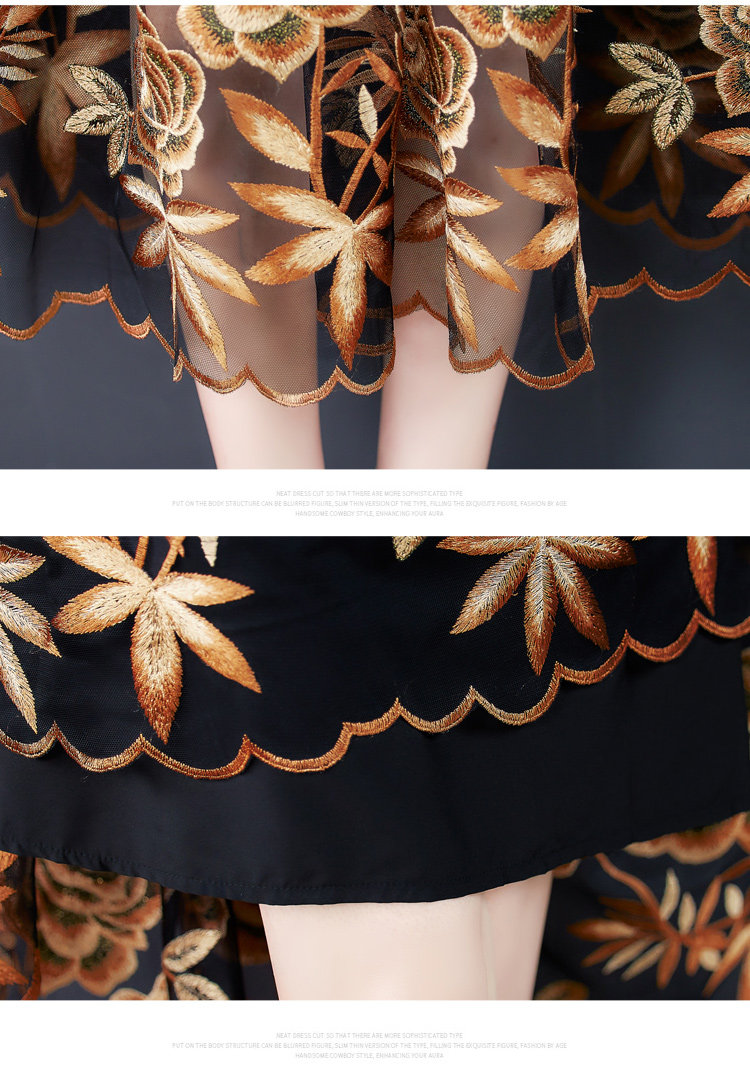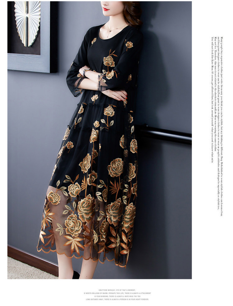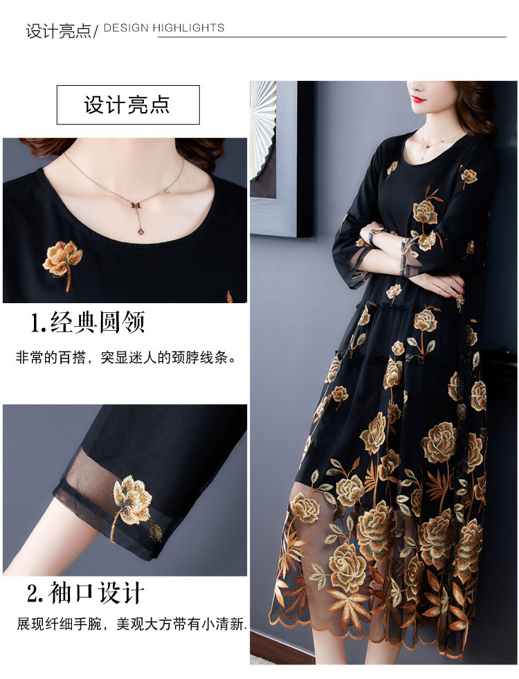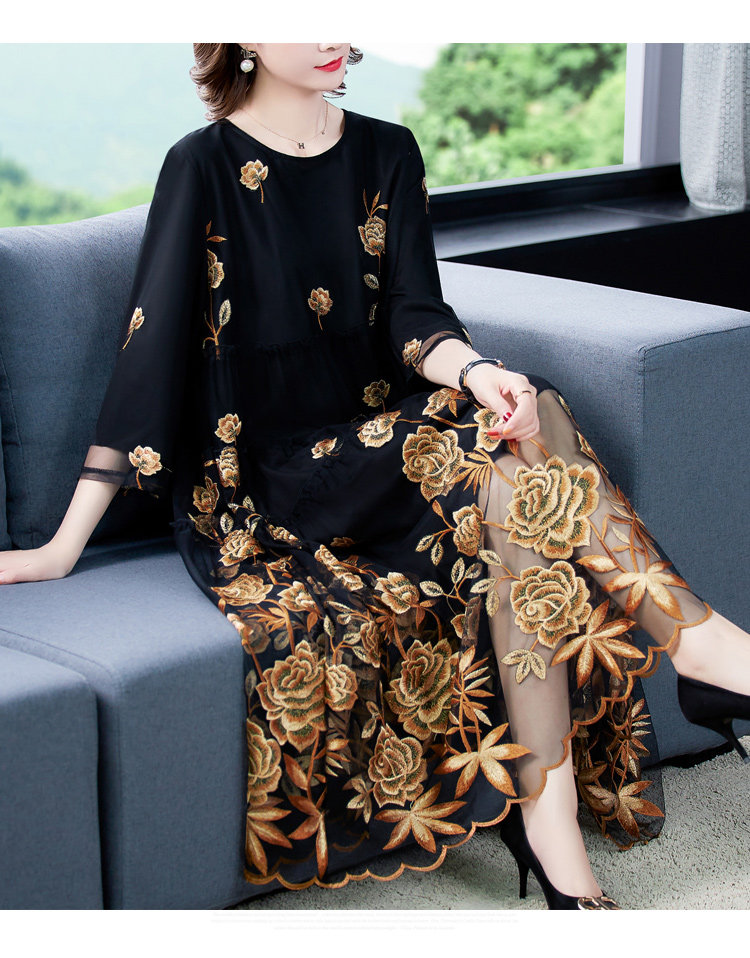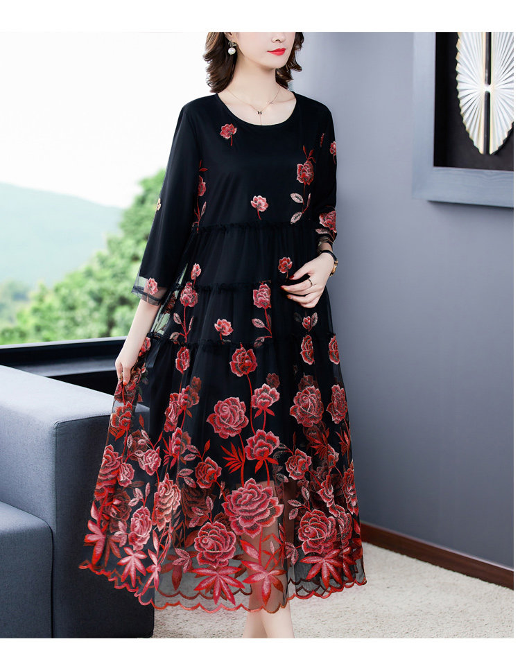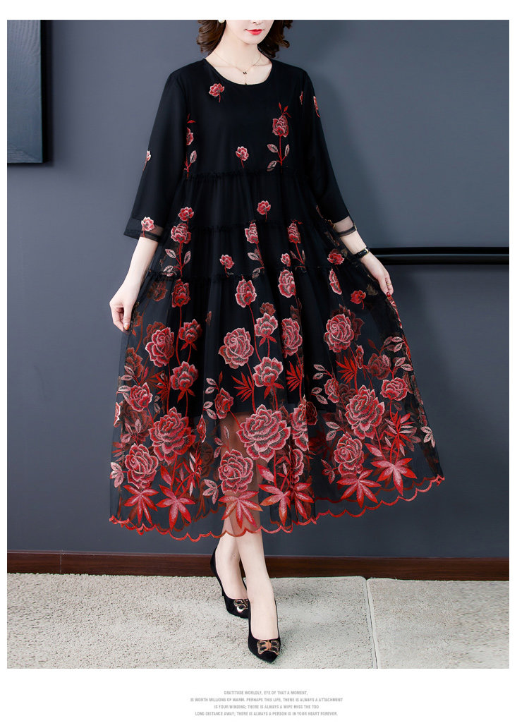 RM5171#重工刺绣连衣裙网纱绣花裙子妈妈裙秋新款A字裙大摆裙