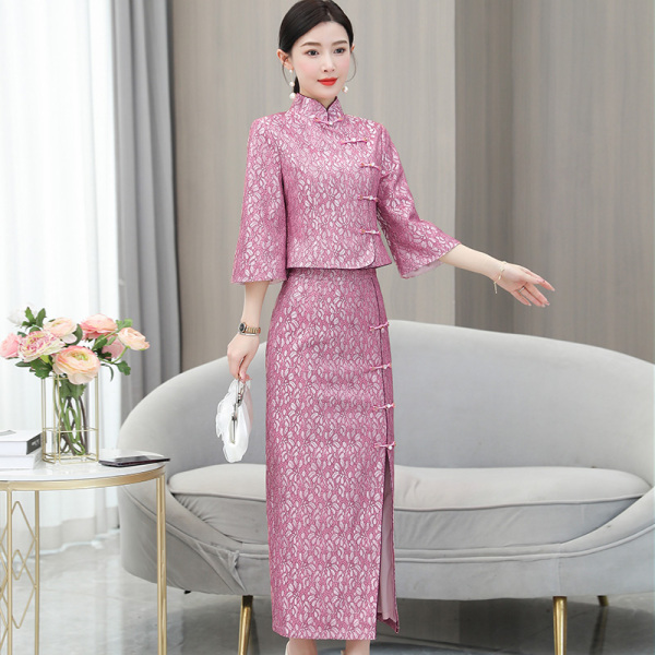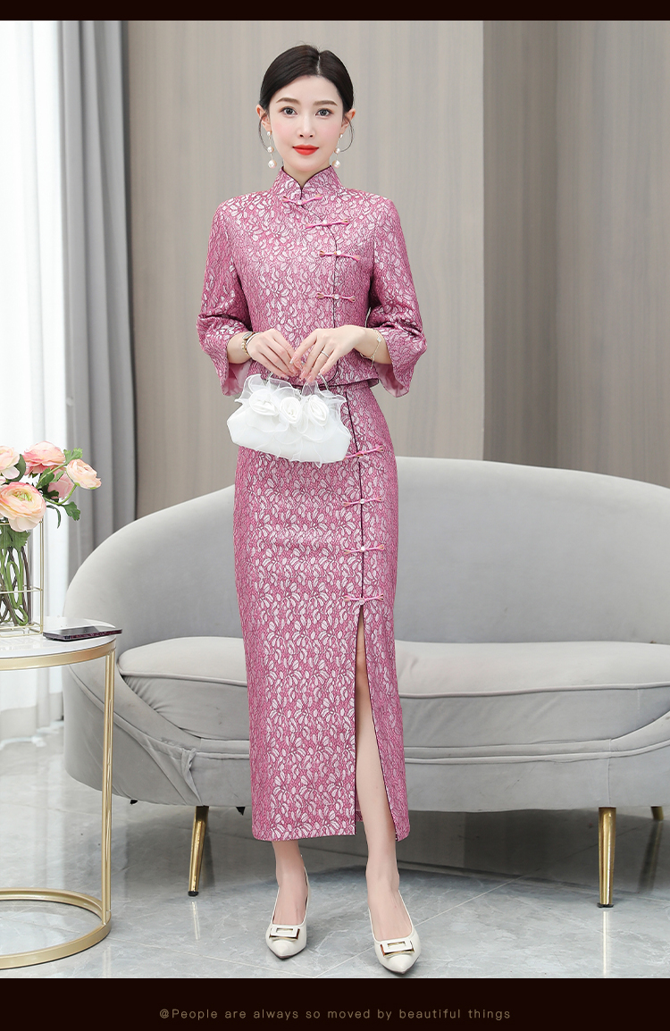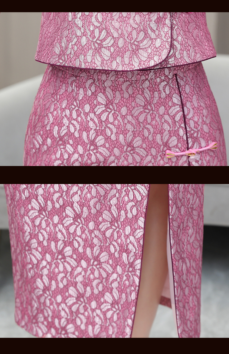 RM5178#新款复古改良旗袍女宽松显瘦蕾丝短袖裙两件套装夏