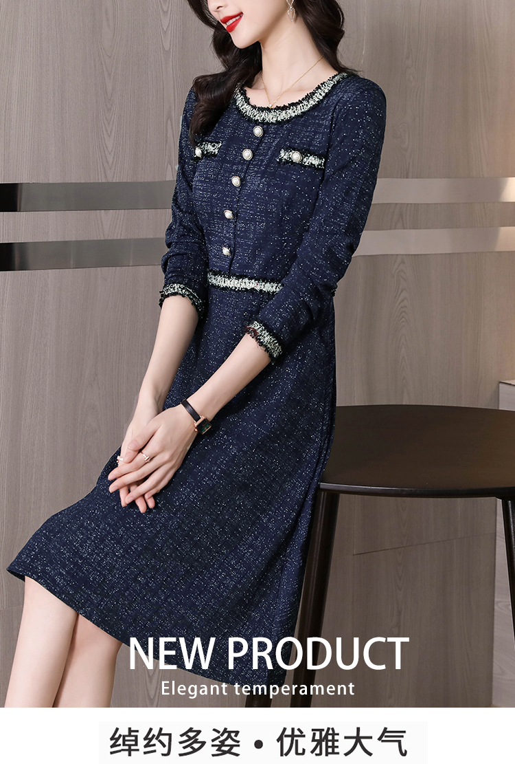 RM5210#赫本女法式小众设计感小香风轻奢名媛长袖针织连衣裙