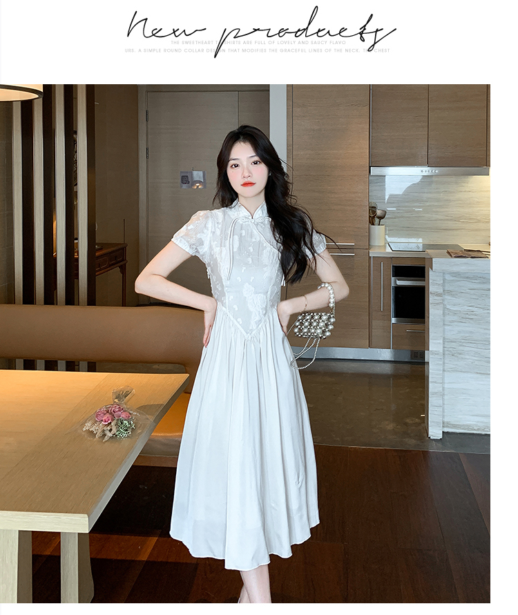 RM5311#新中式裙子女新款2023年夏季显瘦气质国风法式优雅改良旗袍连衣裙