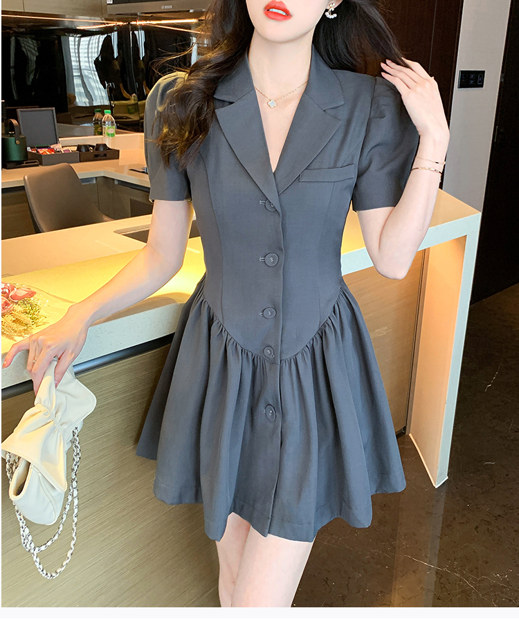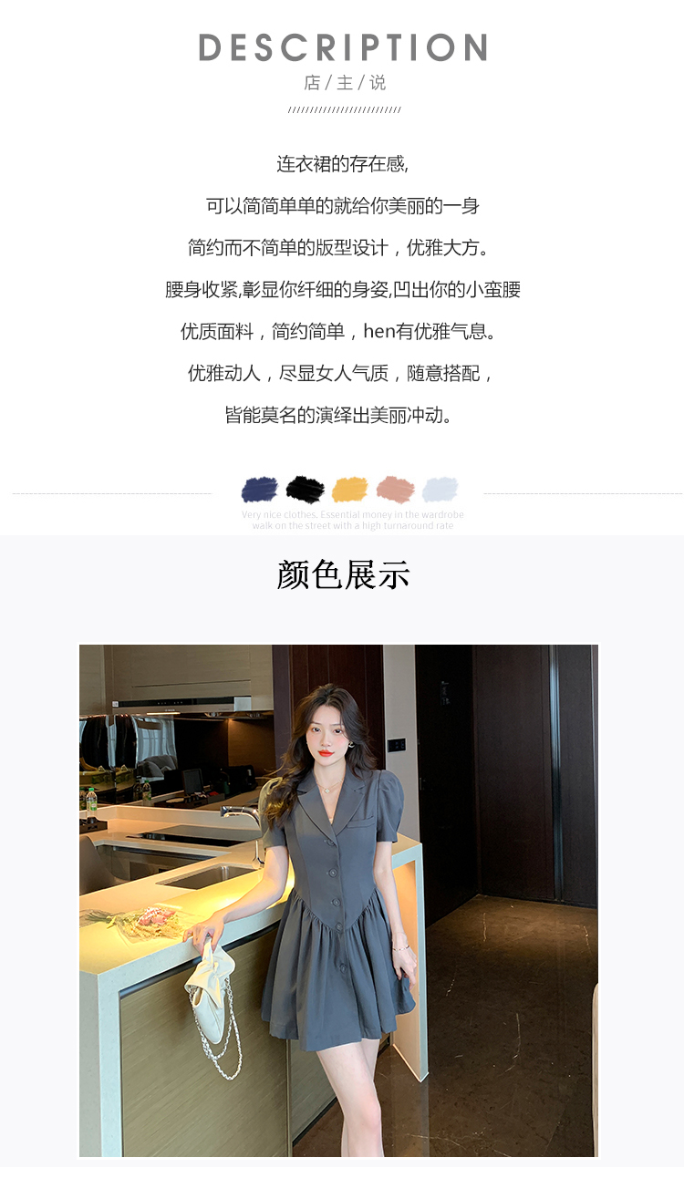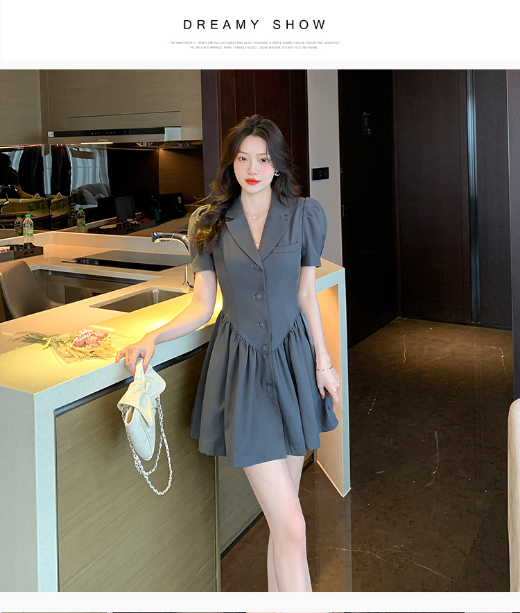 RM5314#可甜可盐法式泡泡袖高级感西装连衣裙子显瘦收腰梨形身材短裙女夏