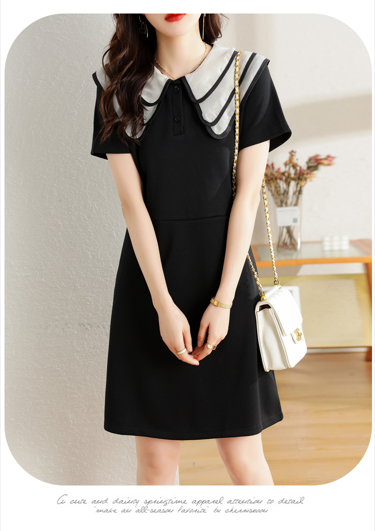 RM5326#娃娃领女夏季2023年新款法式黑色高级感减龄设计感a字连衣裙