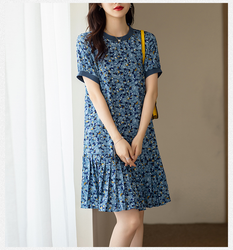 RM5343#夏装新款法式复古碎花百褶裙摆显瘦中长款连衣裙