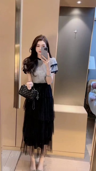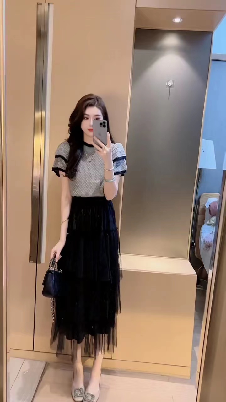RM5362#春夏季新款法式小香风短袖针织衫➕仙女蛋糕裙网纱裙女