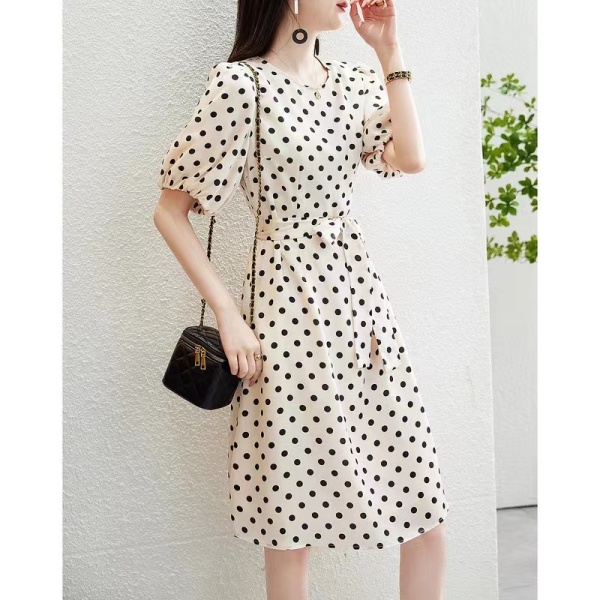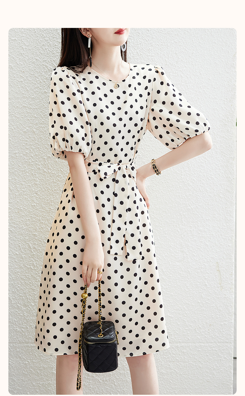 首页 > 女装批发-夏款 > 短袖连衣裙 > RM5370#波点法式连衣裙女2023春季新款圆领气质中长裙