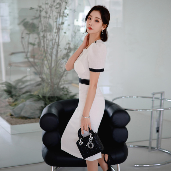 RM5403#新款韩版气质显瘦撞色包臀连衣裙