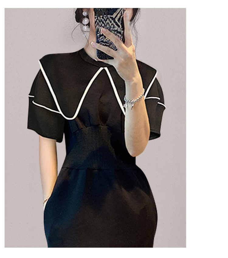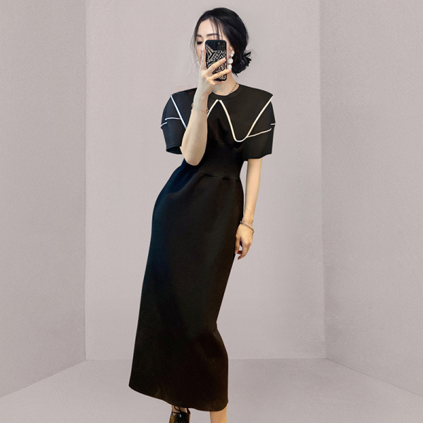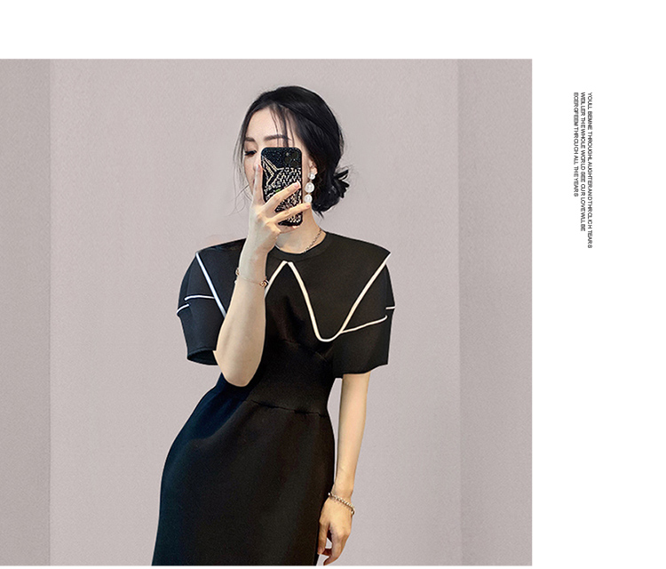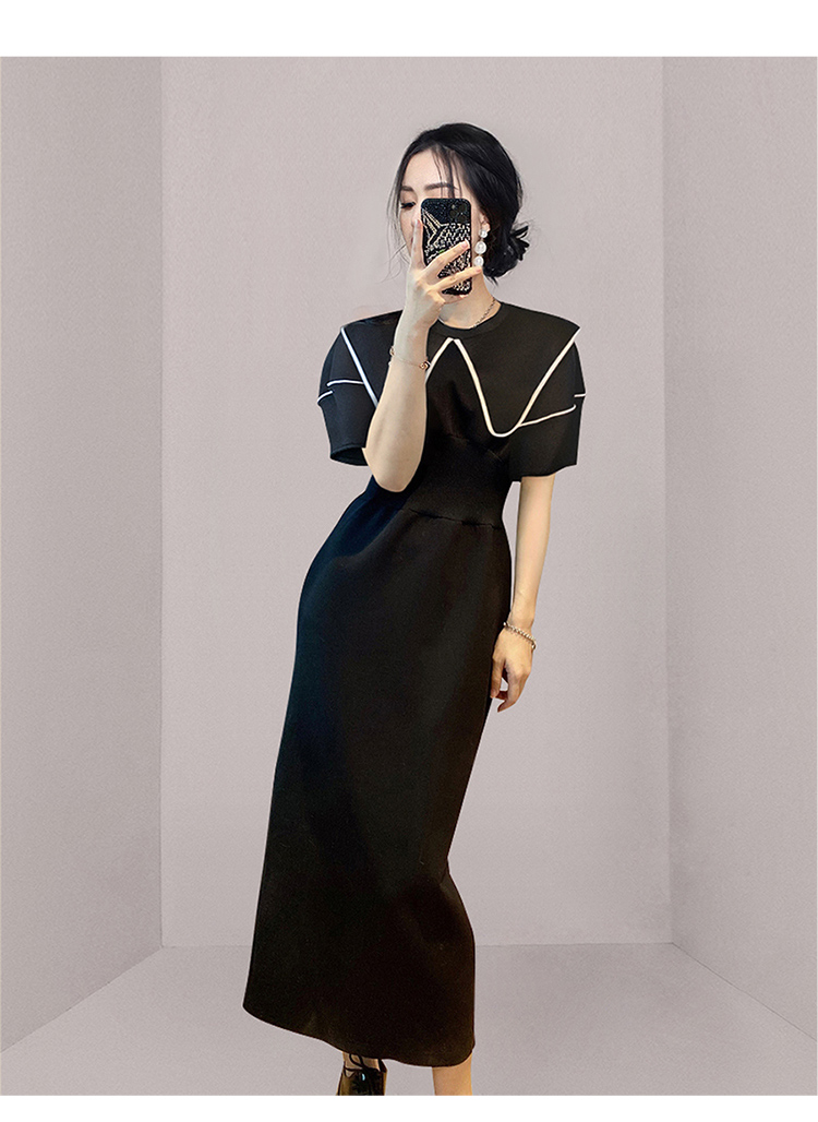 RM5405#新款法式黑色翻领收腰显瘦包臀连衣裙
