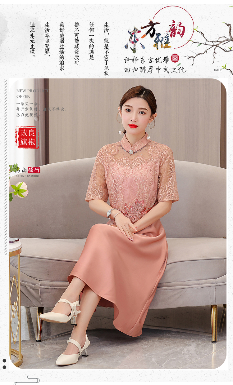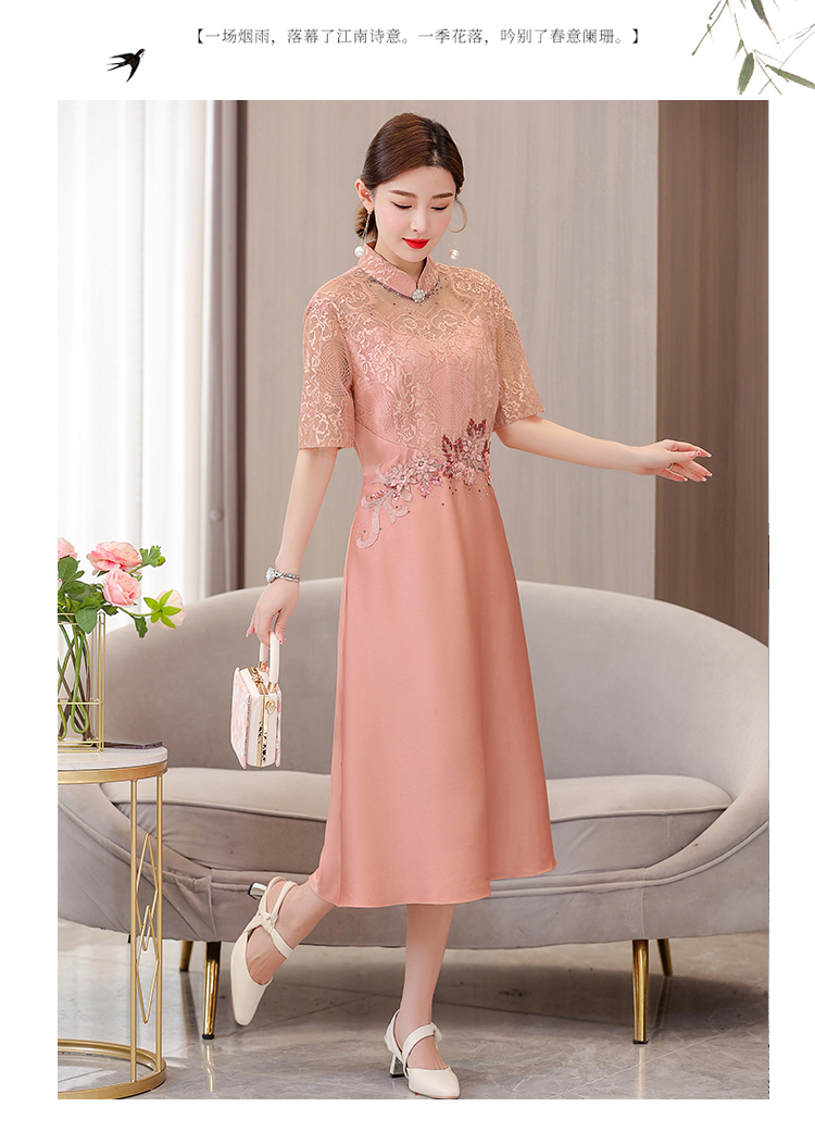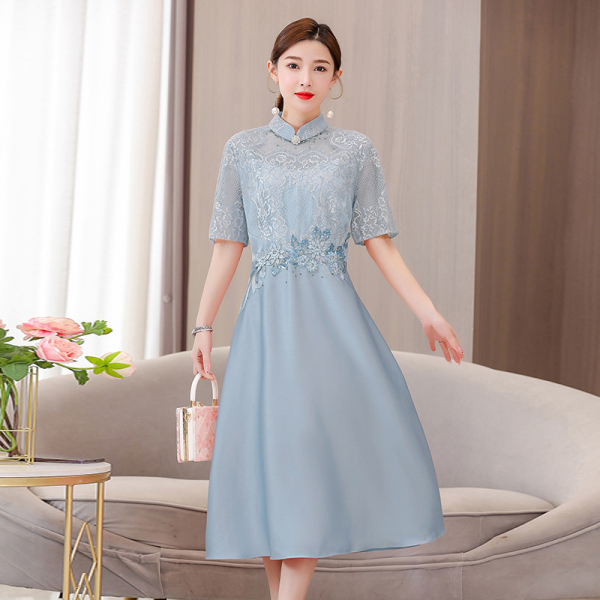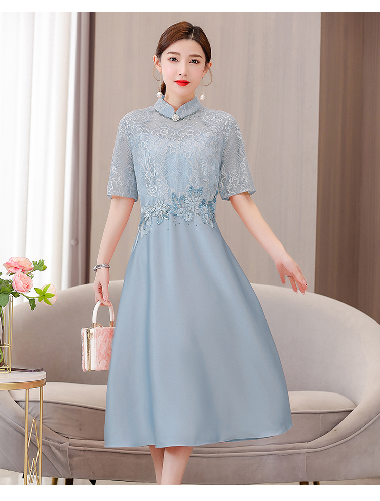 RM5425#新款小立领收腰气质时尚大码婚礼妈妈礼服裙