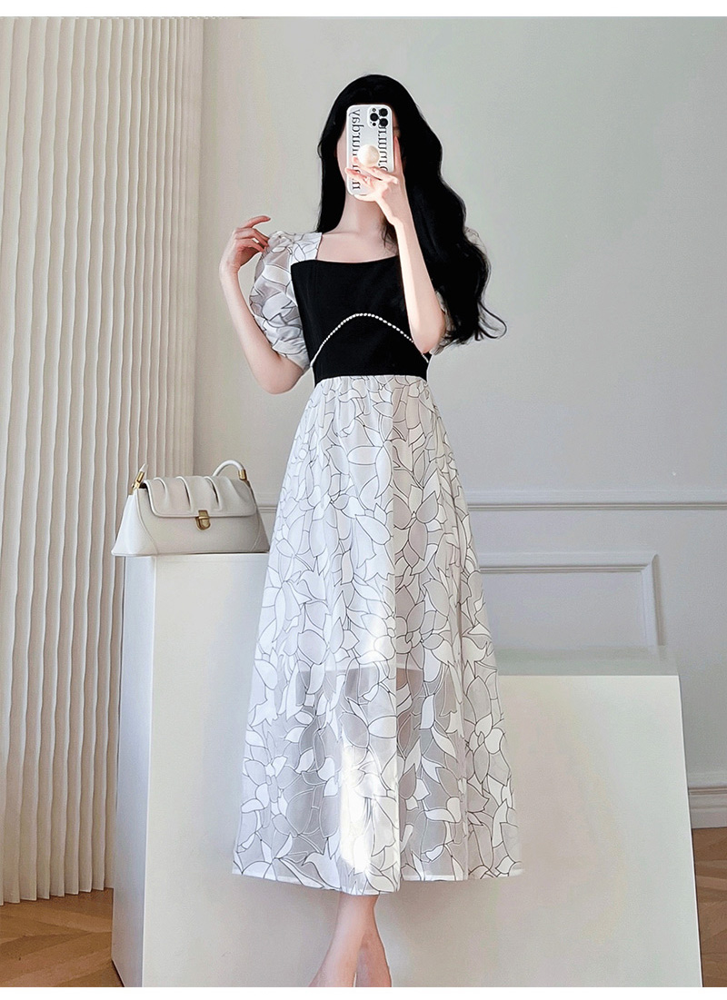 RM5456#夏季新款女装高腰显瘦法式复古气拼接质赫本风海边度假连衣裙
