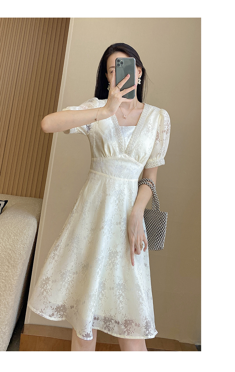 RM5462#连衣裙女2023新款夏气质显瘦a字御姐轻熟风收腰名媛蕾丝裙子