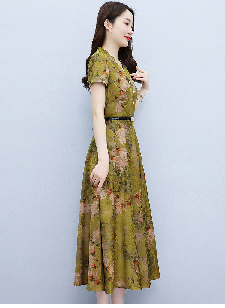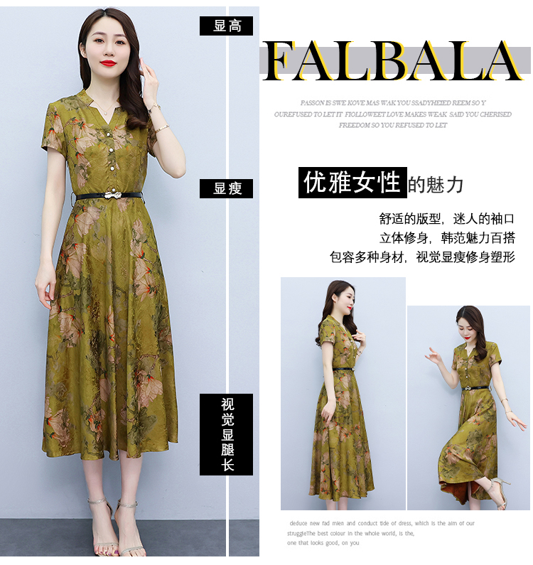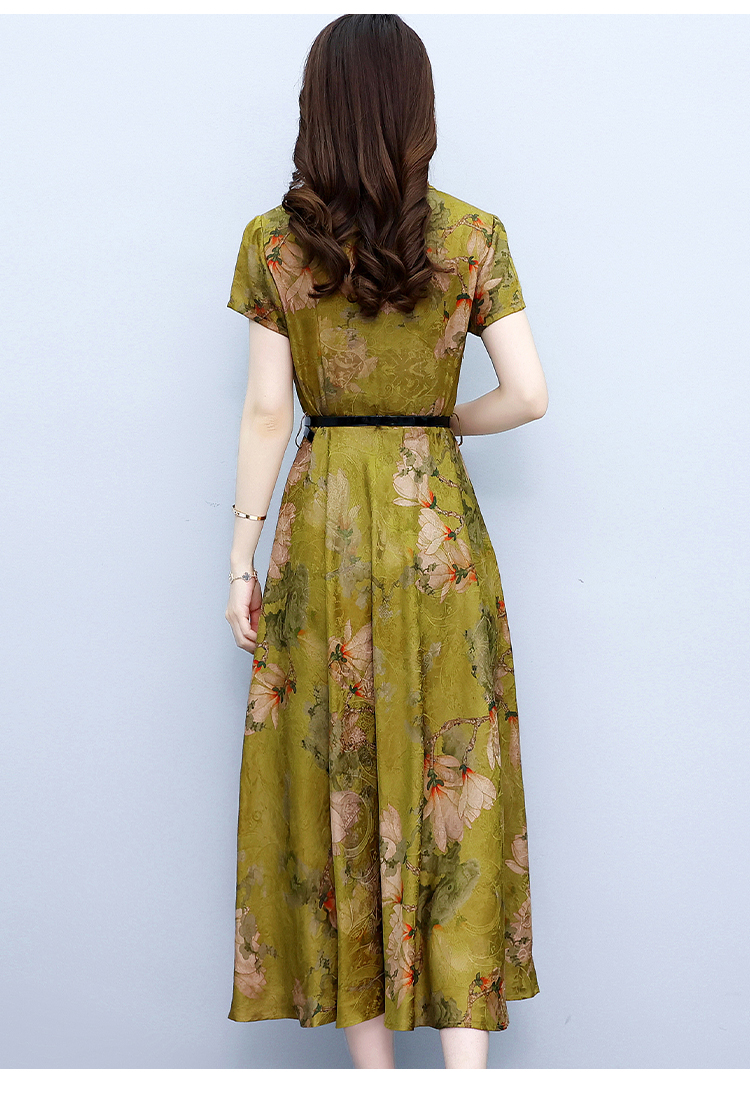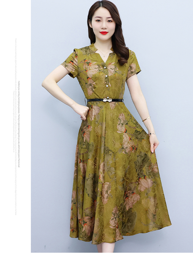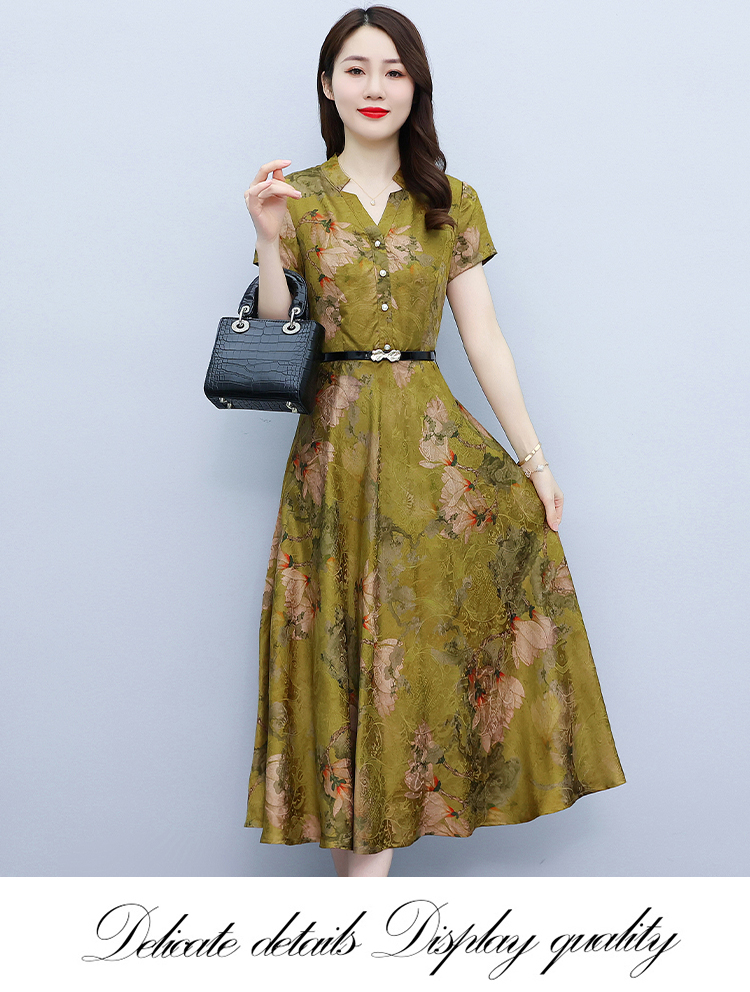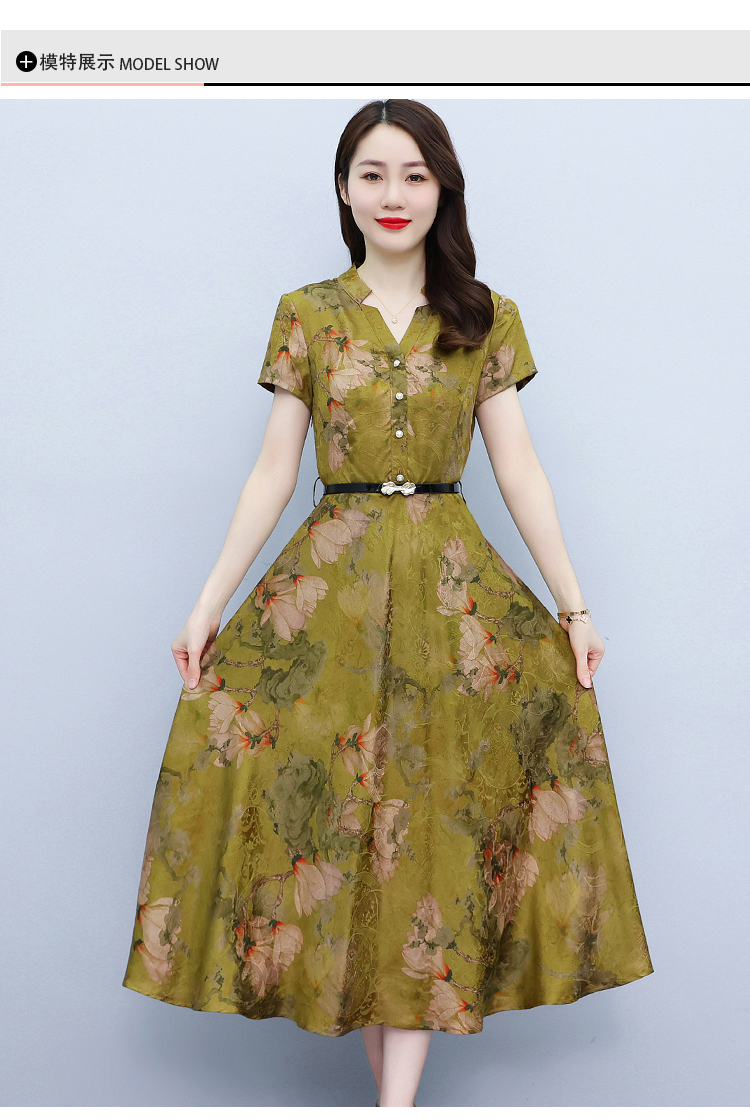 RM5475#夏季新款重磅花罗提花真丝香云纱印花百搭连衣裙女