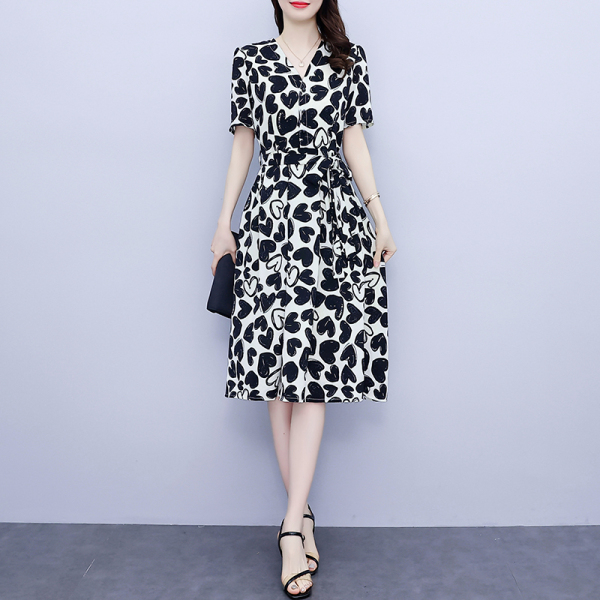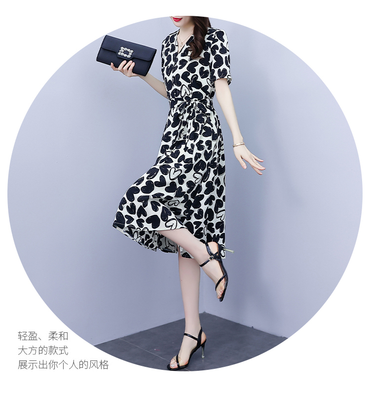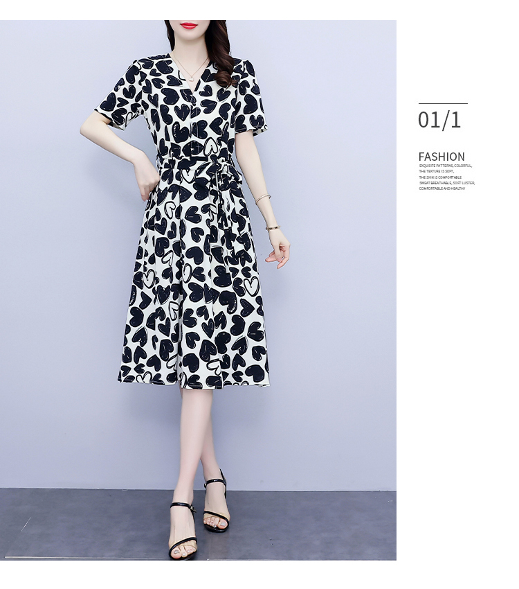 RM5478#大码女装2022夏季新款时尚短袖气质中长款大摆雪纺印花显瘦连衣裙