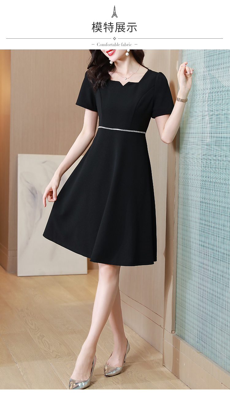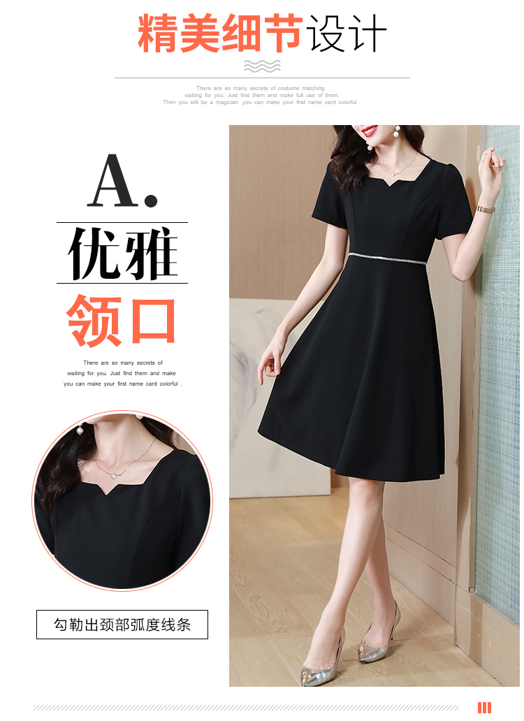 RM5548#夏款女气质连衣裙修身显瘦短袖黑色弹力钉珠高级感连衣裙6162