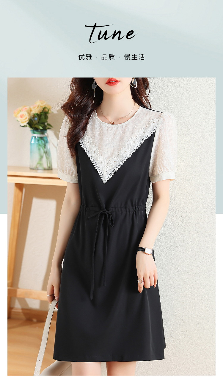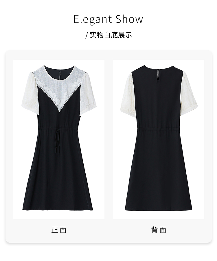 RM5554#欧洲站新款设计感黑色圆领撞色系带收腰气质小众连衣裙女