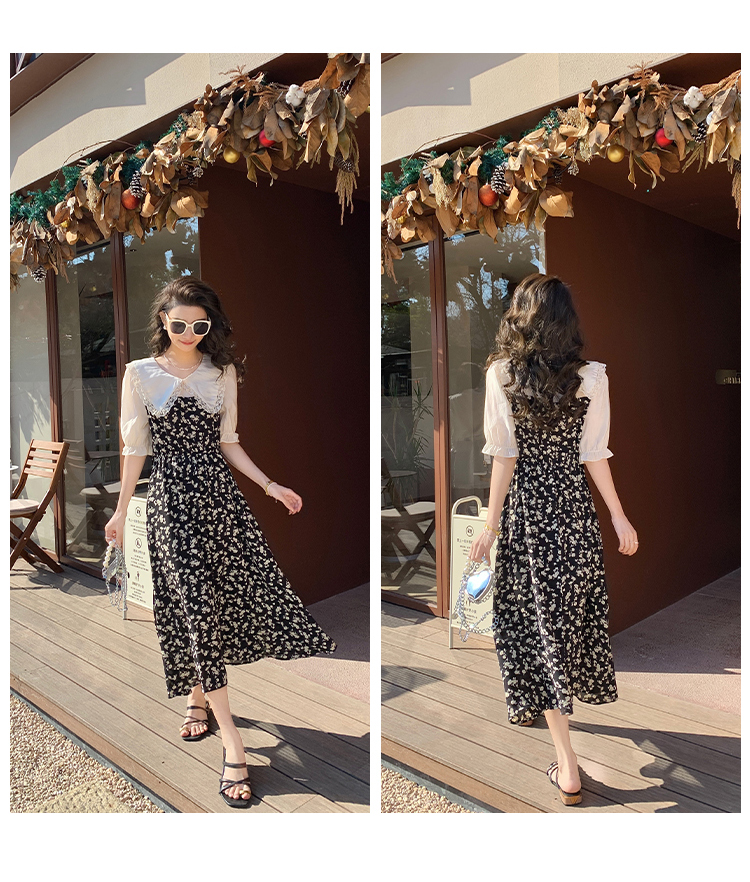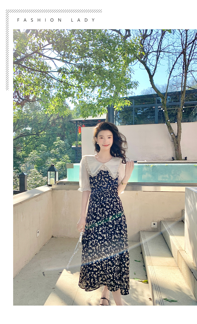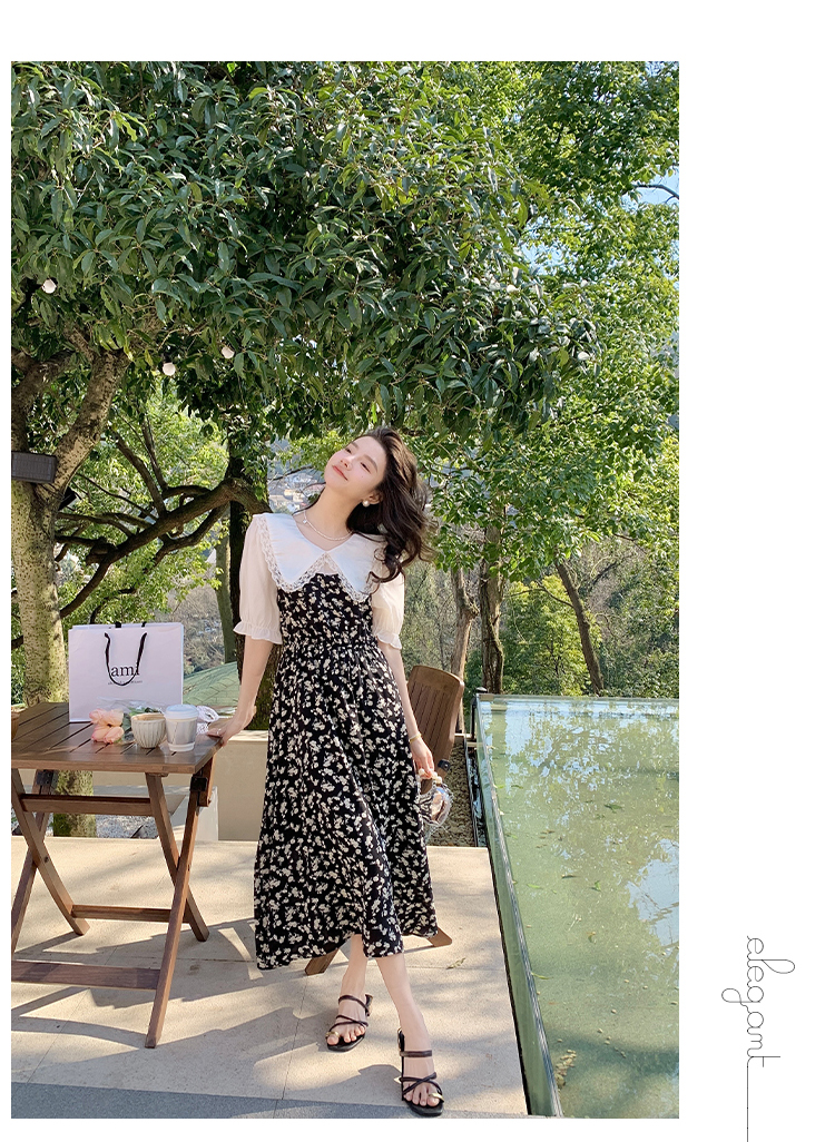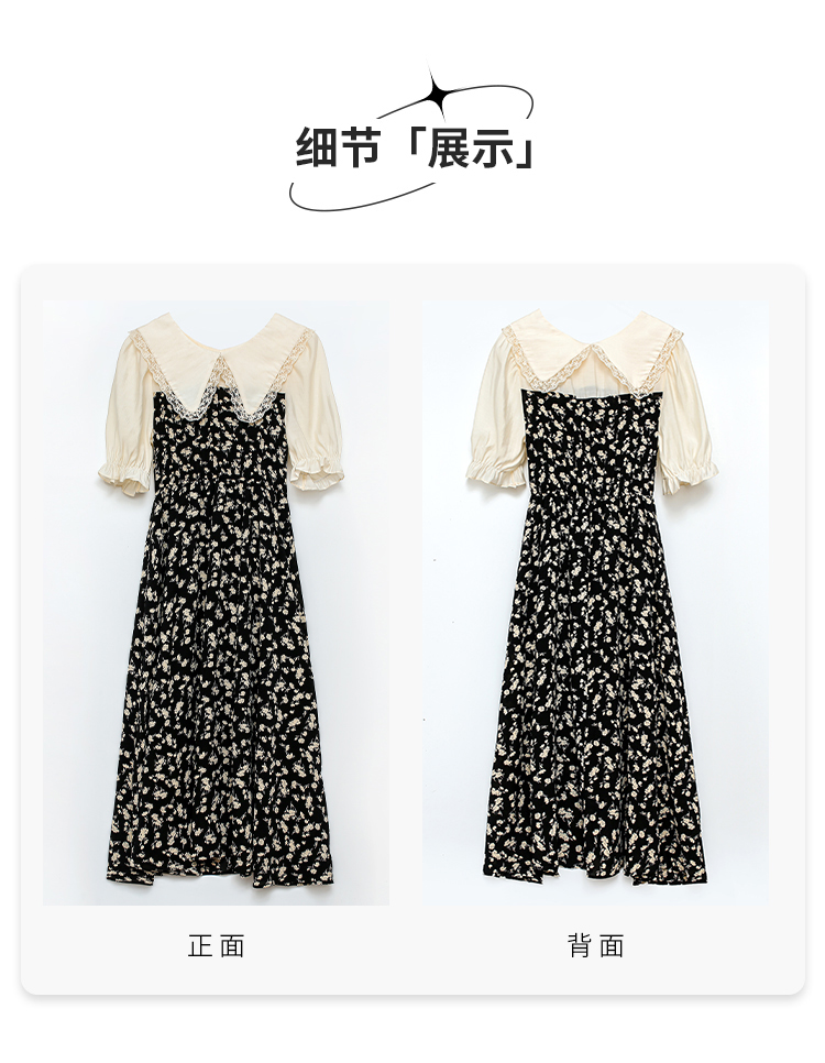 RM5557#连衣裙夏季女气质收腰显瘦娃娃领碎花拼接高级感法式裙子