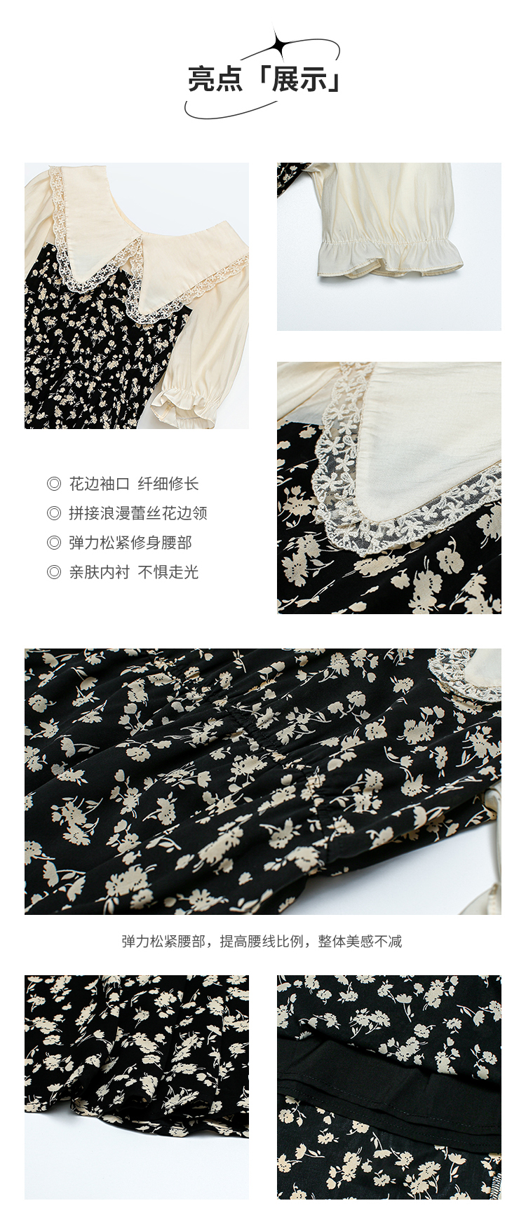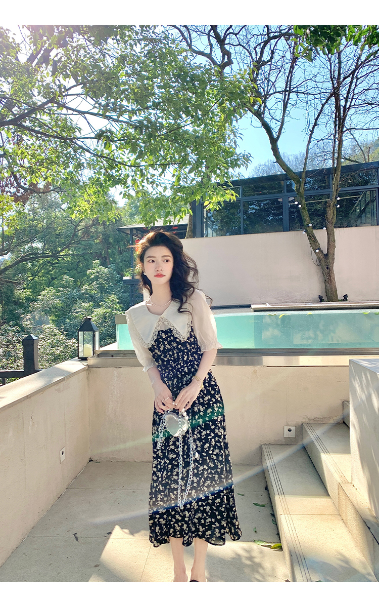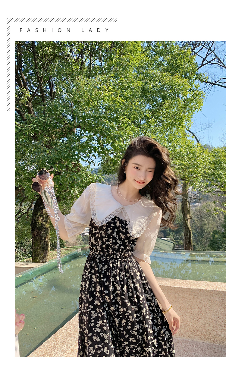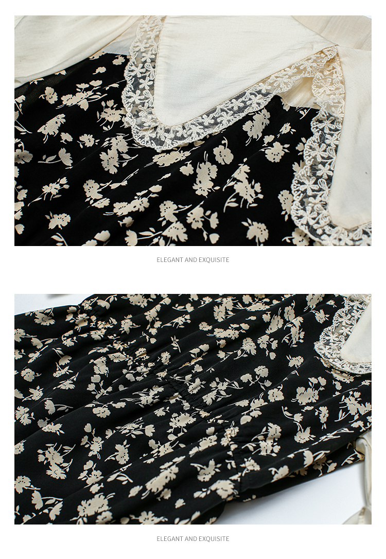 RM5557#连衣裙夏季女气质收腰显瘦娃娃领碎花拼接高级感法式裙子