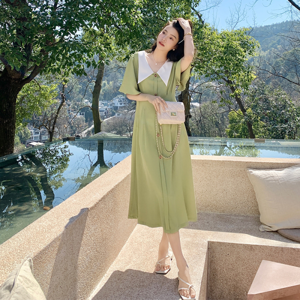 RM5558#大码女装胖mm法式别致收腰A字连衣裙夏新款梨形身材裙子