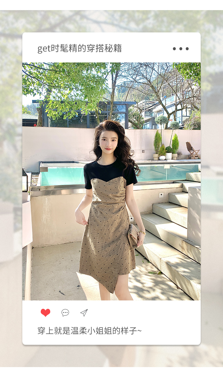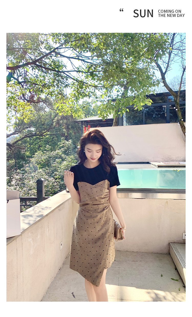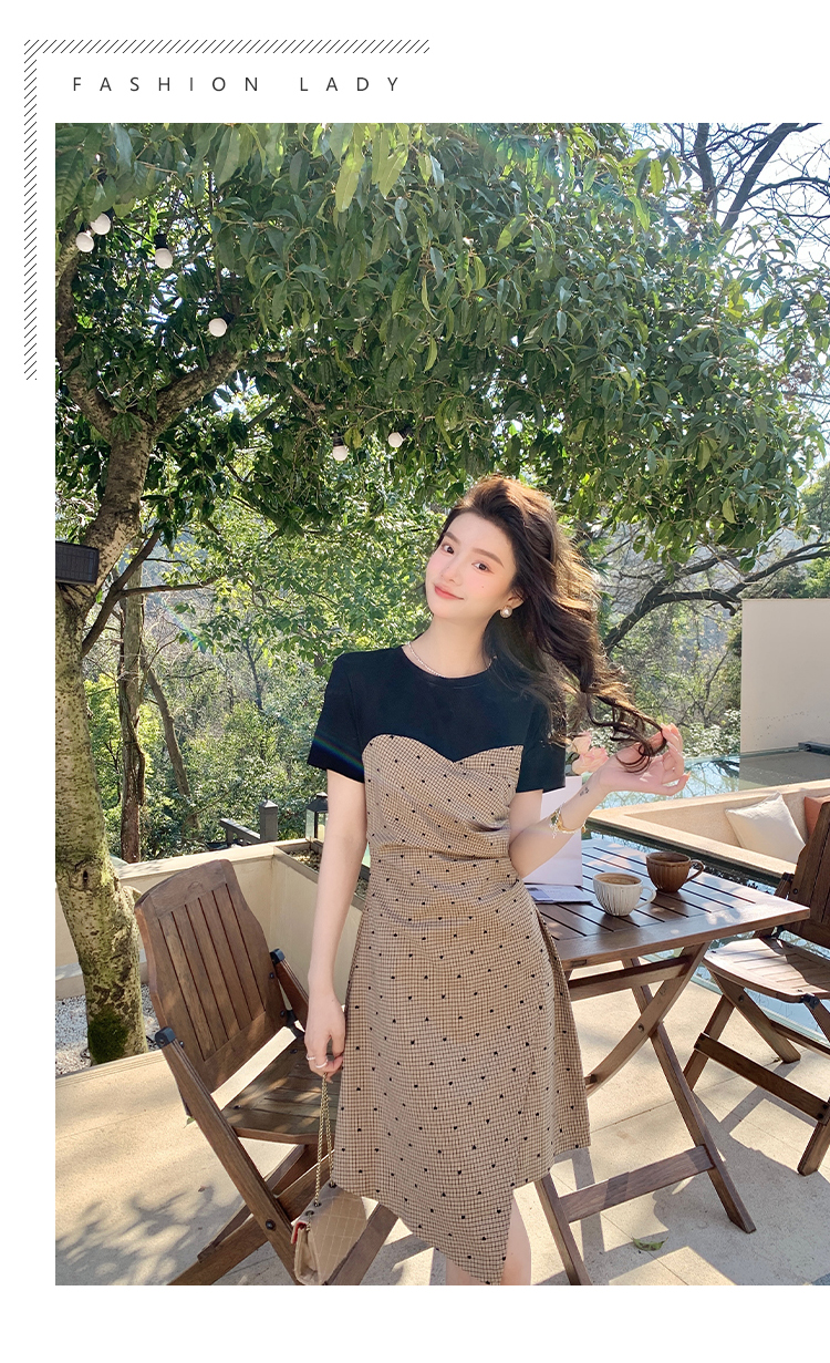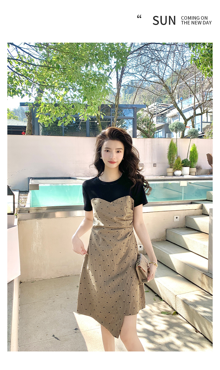 RM5560#夏季新款女装韩版拼接不对称时尚气质爱心抽褶连衣裙
