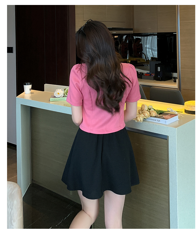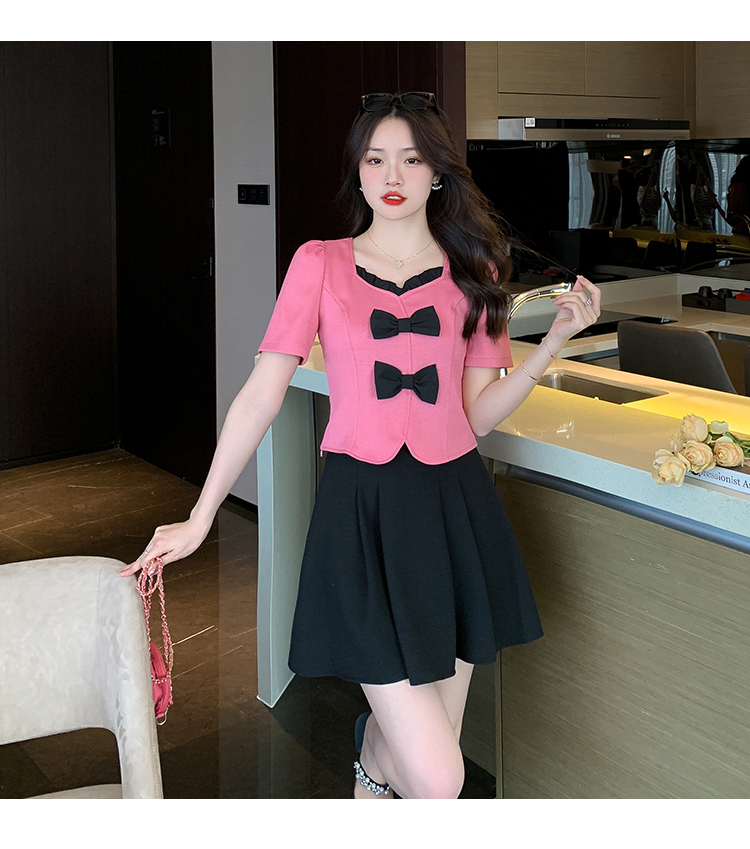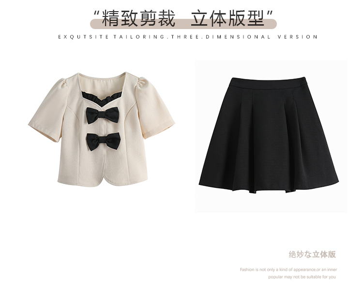 RM5562#夏季新款方领蝴蝶结甜美减龄短款两件套裙上衣+半身裙