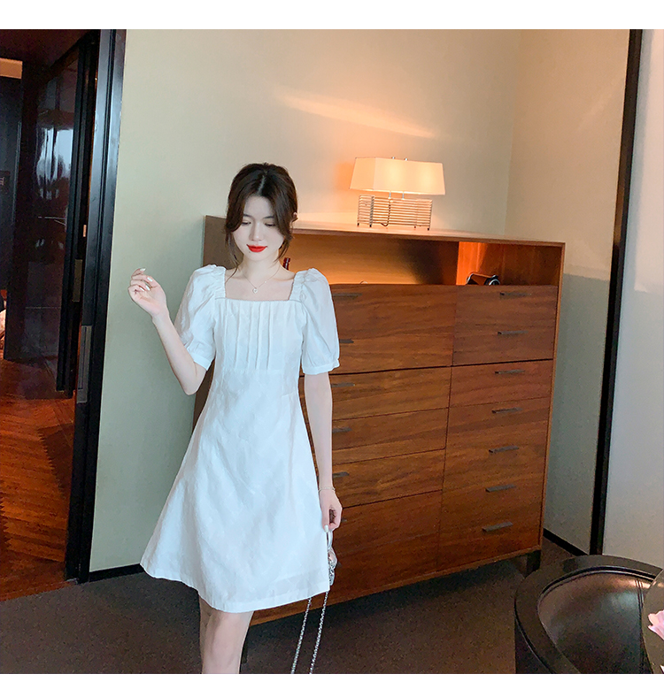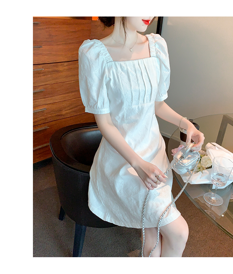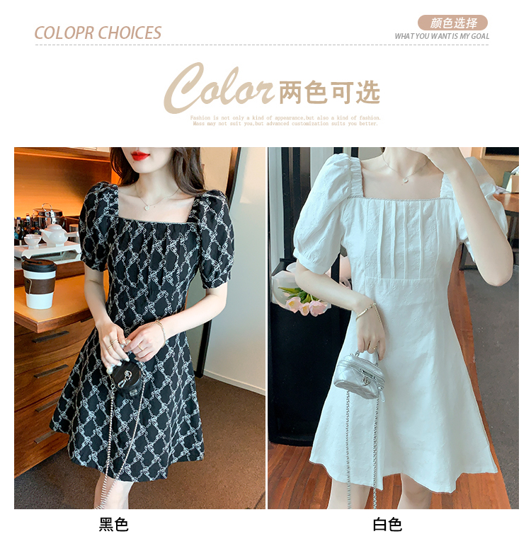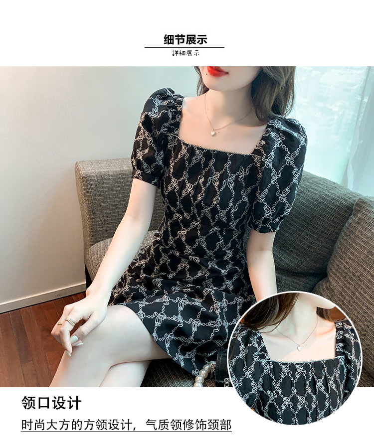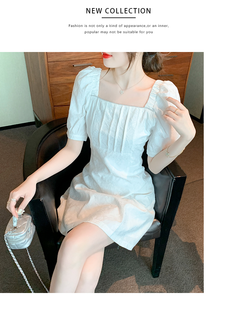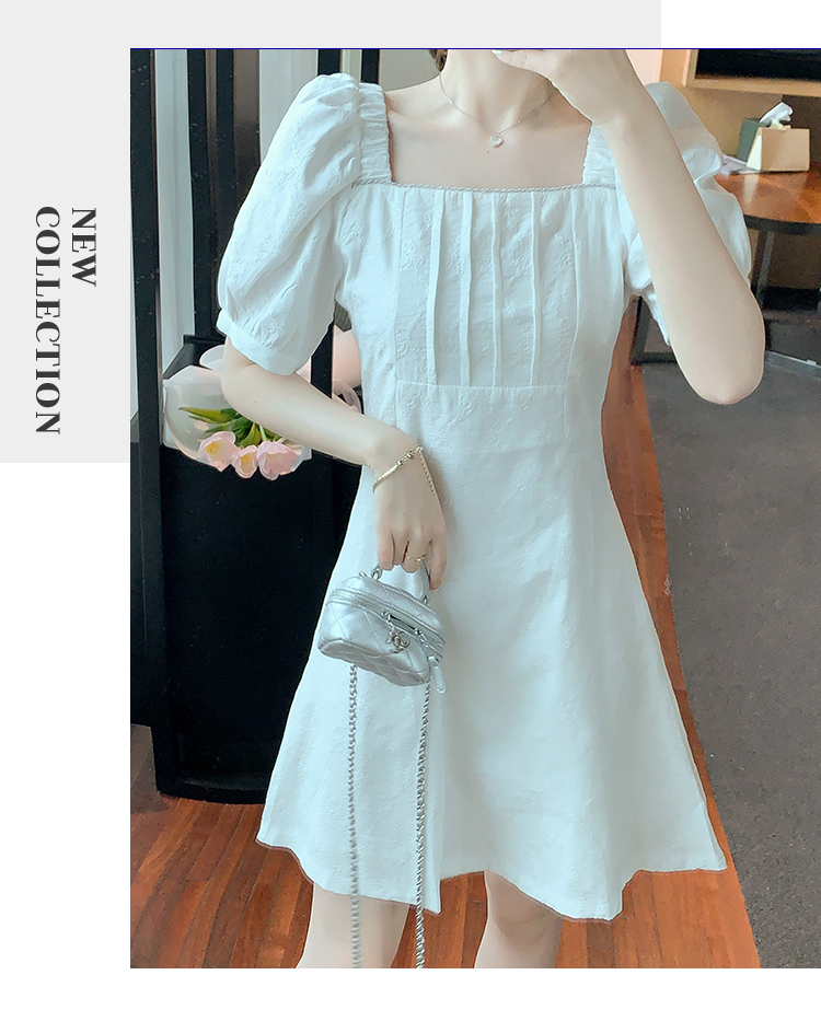 RM5593#夏季新款网红爆款法式方领绣花小个子A字连衣裙