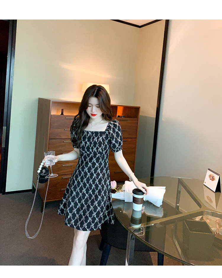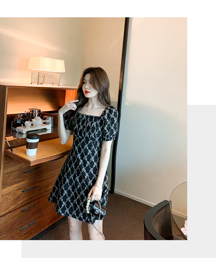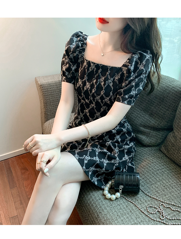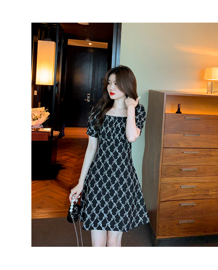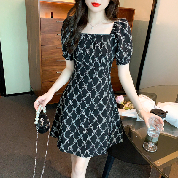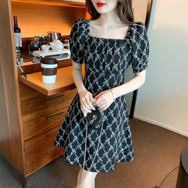 RM5593#夏季新款网红爆款法式方领绣花小个子A字连衣裙