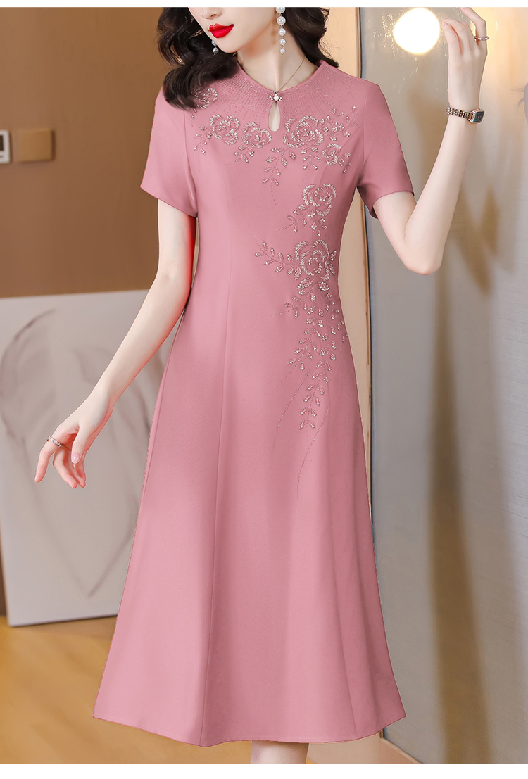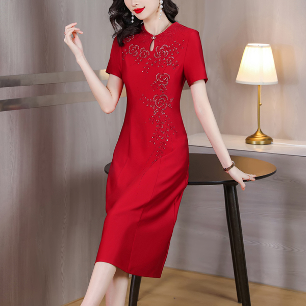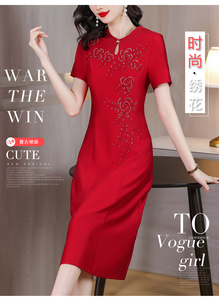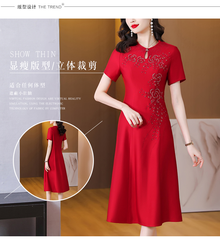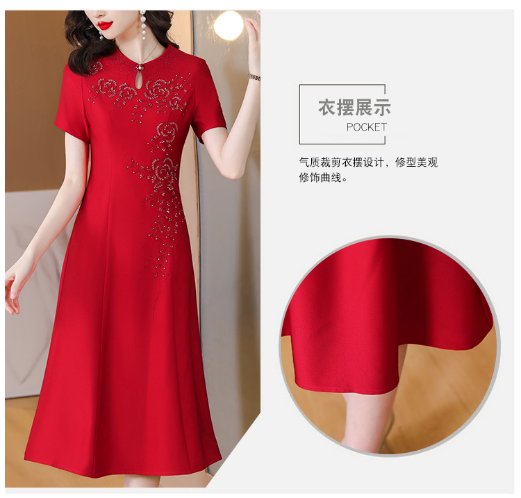 RM5658#时尚妈妈婚宴礼服宴会连衣裙平时可穿醋酸喜婆婆敬酒服大码年轻款