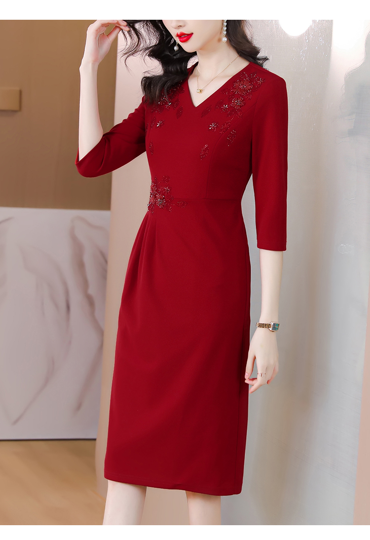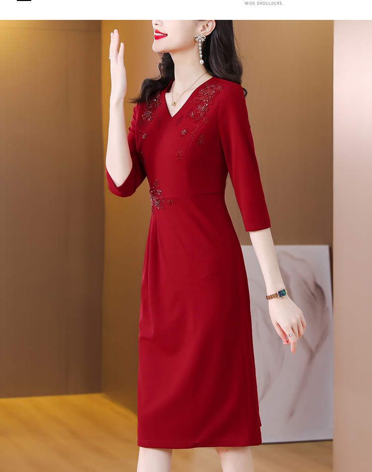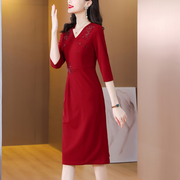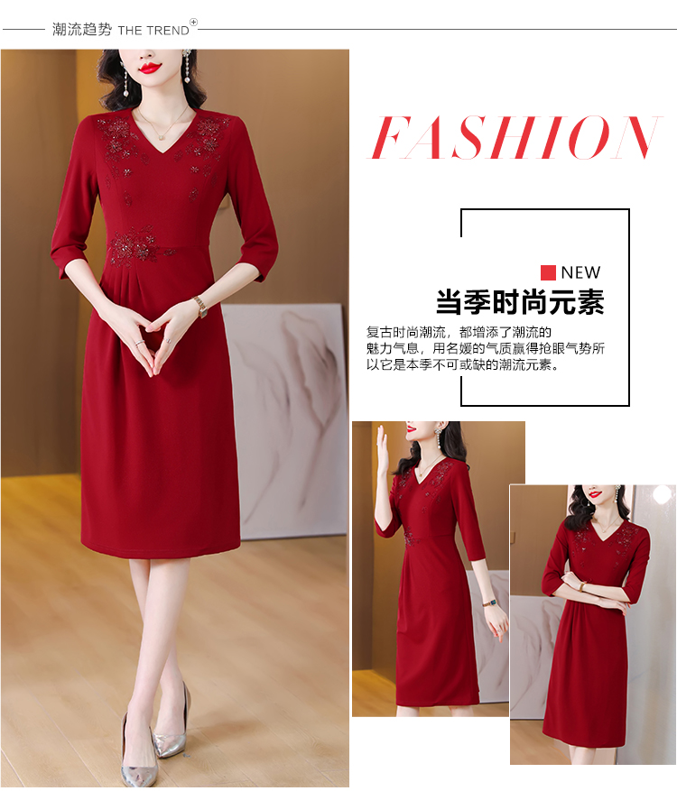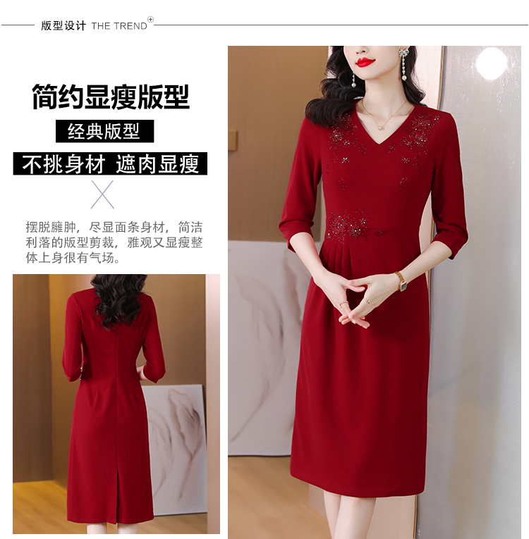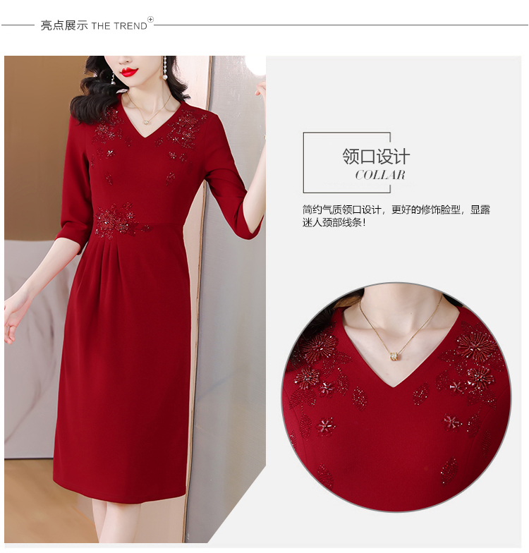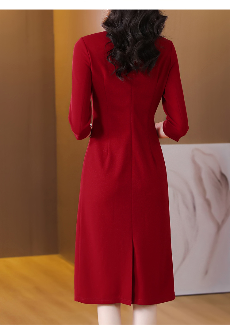 RM5659#婚宴妈妈礼服红色旗袍女春秋喜婆婆婚礼服平时可穿轻奢气质连衣裙