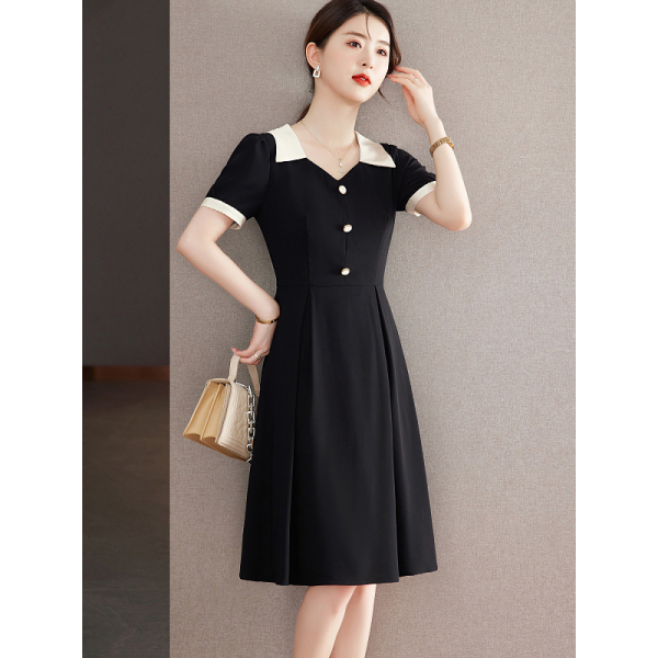 RM5667#黑色连衣裙夏季女2023年新款娃娃领中长款修身显瘦气质高级感裙子