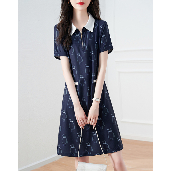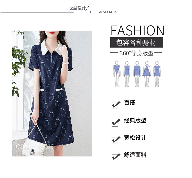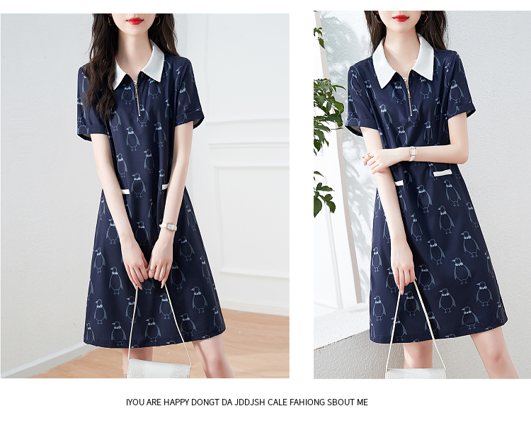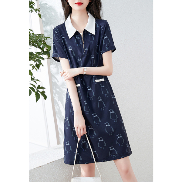 RM5669#短袖休闲POLO领连衣裙女2023年夏新款韩版遮肉中长裙气质裙简约