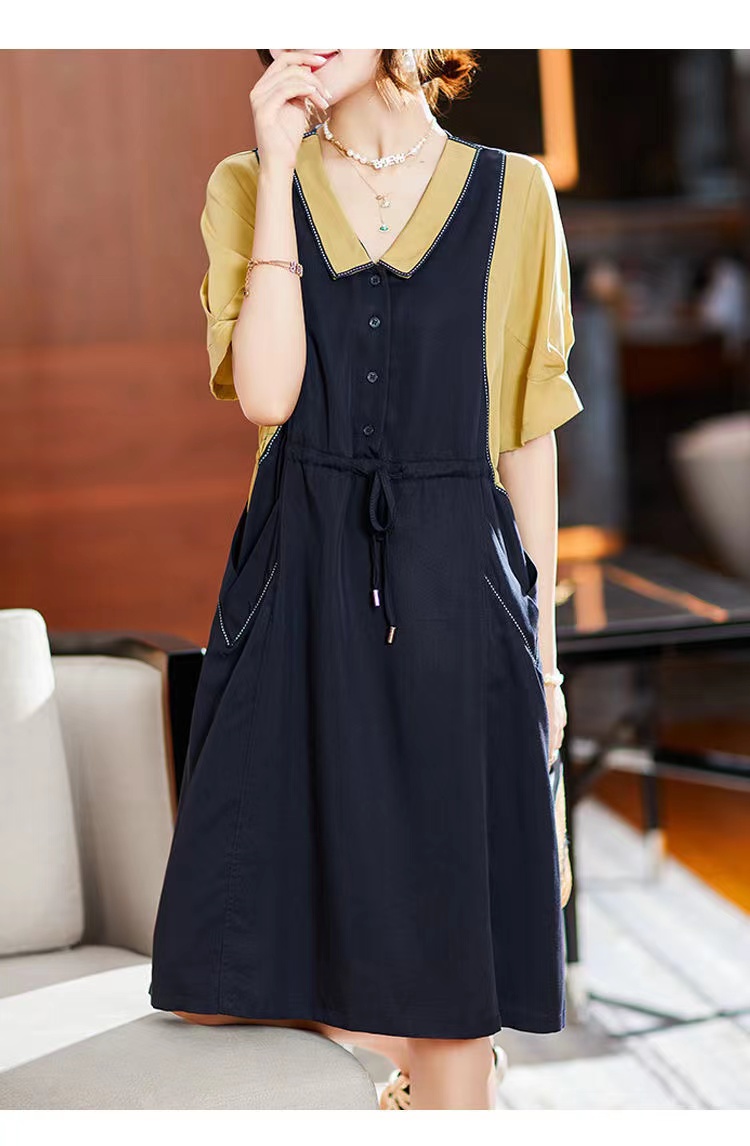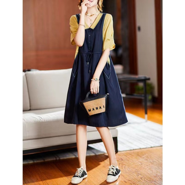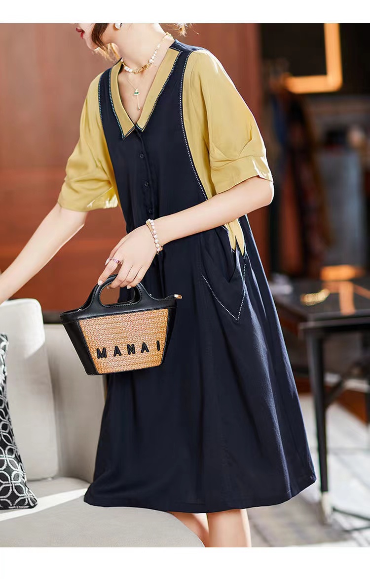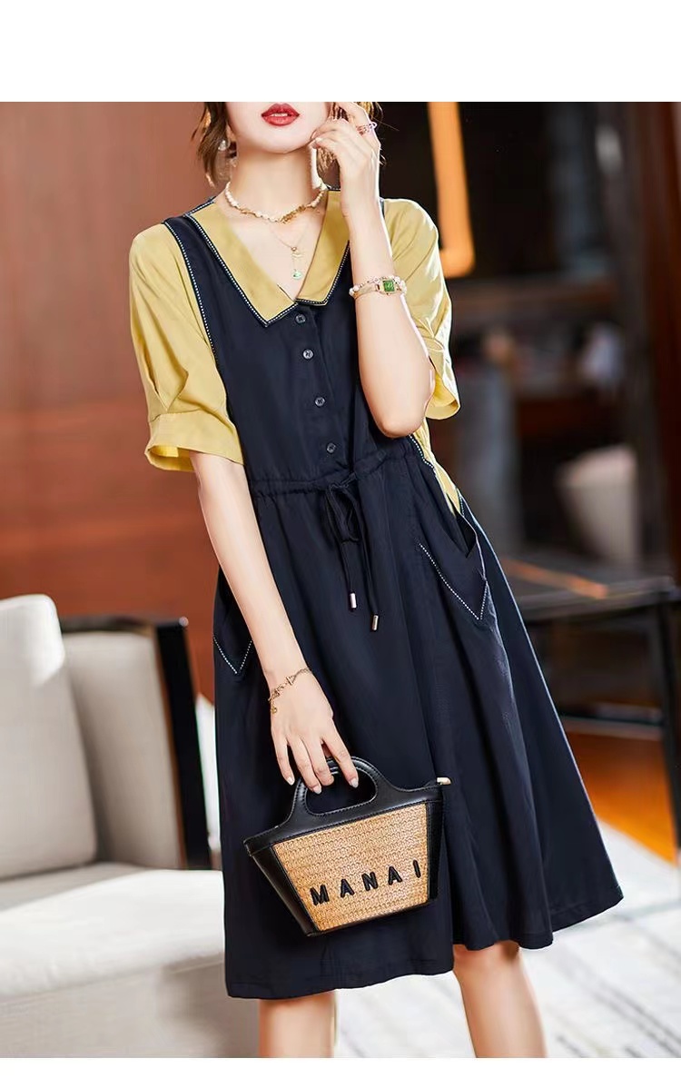 RM5671#大码2023年夏季新款女胖MM假两件减龄洋气显瘦连衣裙宽松型A字裙
