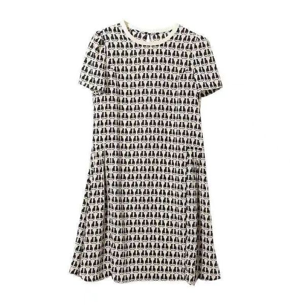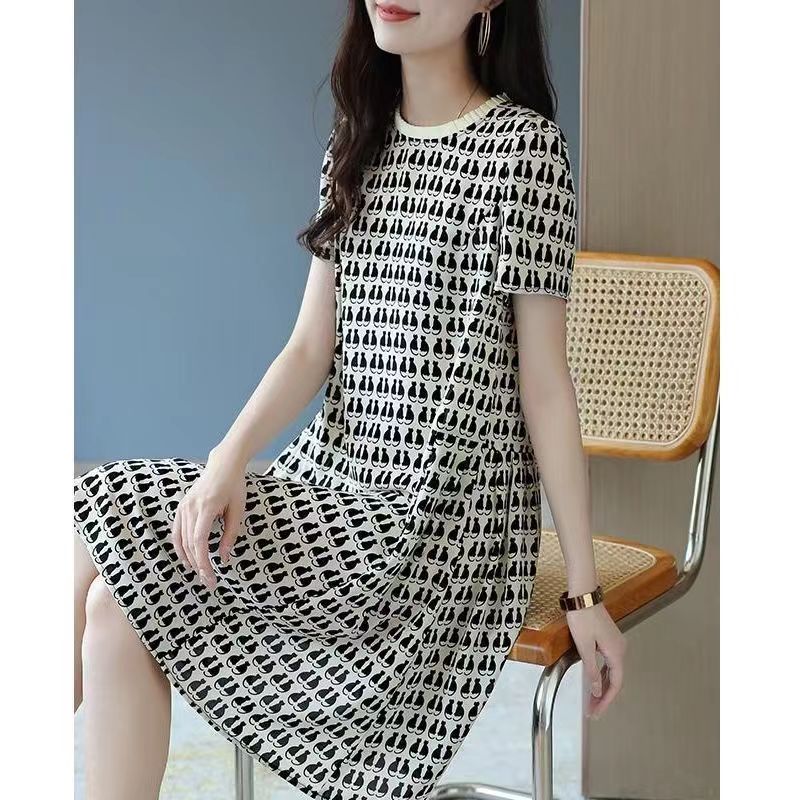 RM5677#宝诗黎圆领印花短袖雪纺连衣裙女夏季新款2023中长款时尚气质裙子