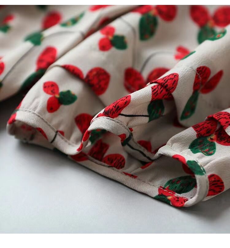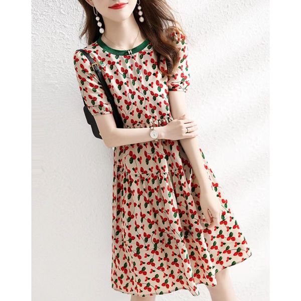 RM5678#新樱桃碎花茶歇裙气质时尚小清新印花裙子雪纺通勤圆领连衣裙