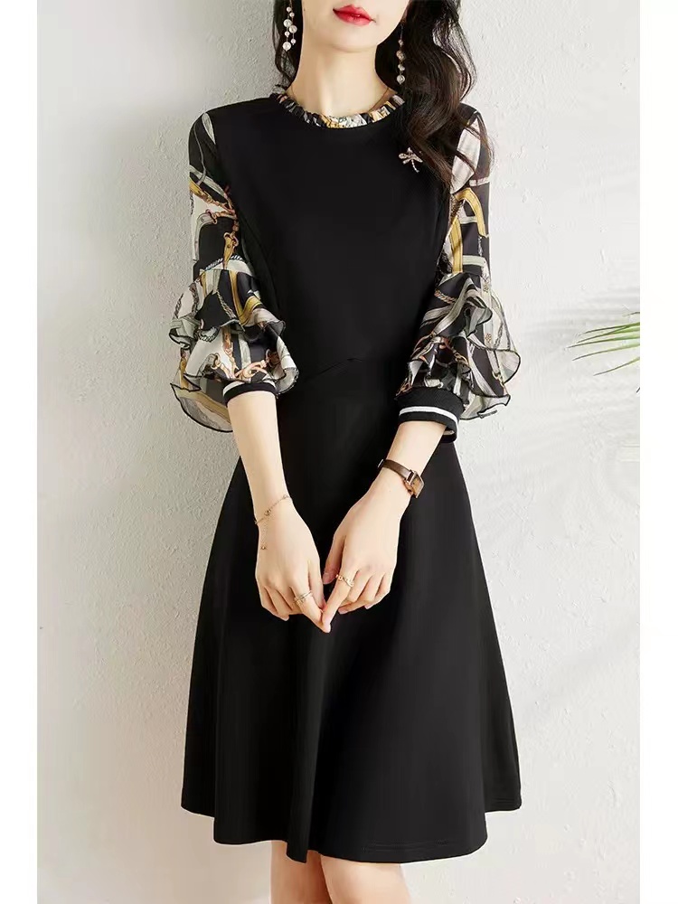RM5682#新款韩版春装中长款收腰显瘦时尚气质七分袖A字连衣裙女士