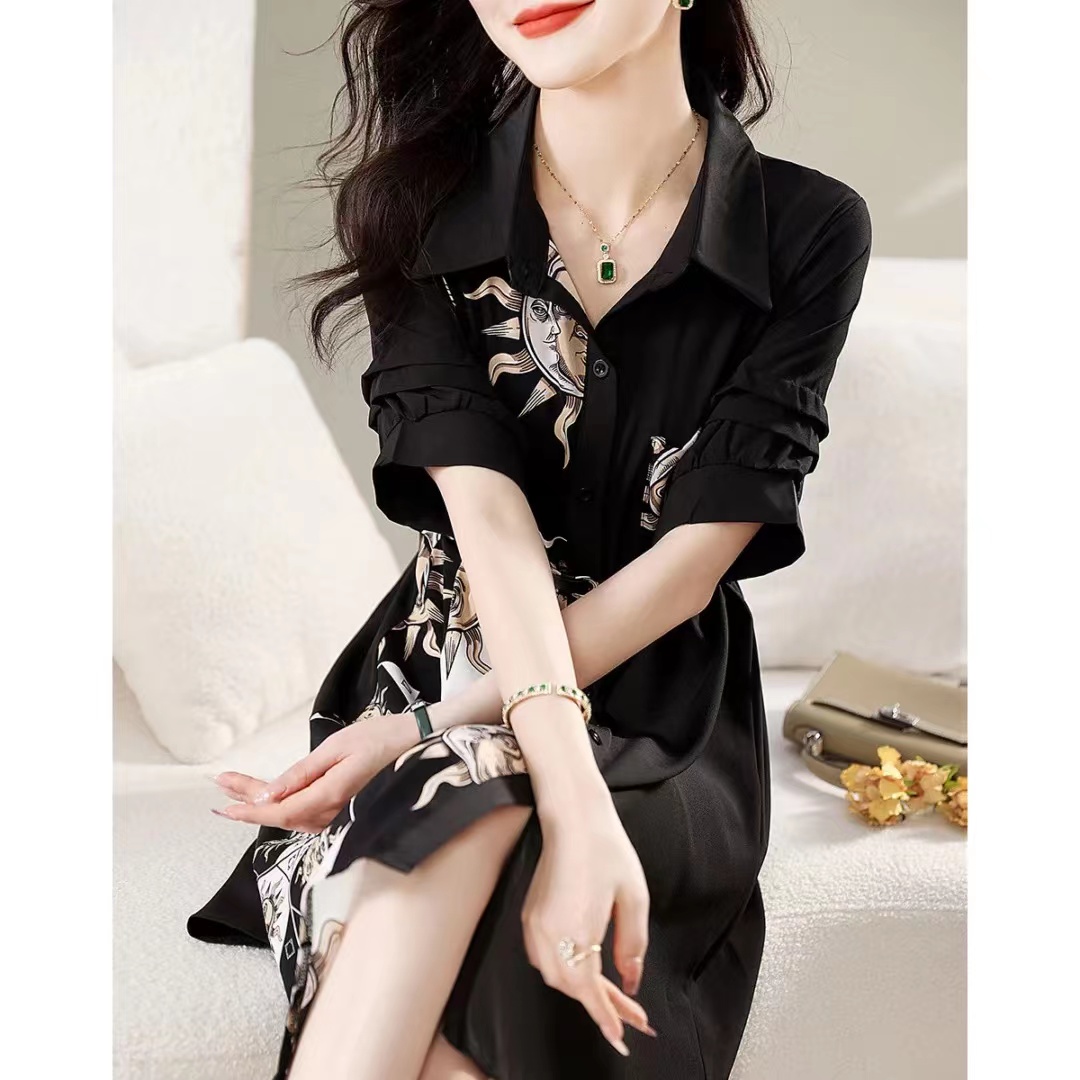RM5684#艺术绘画衬衣连衣裙夏季法式印花高级感裙子收腰显瘦连衣裙女