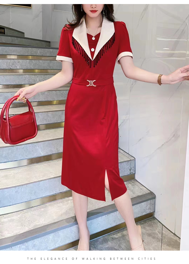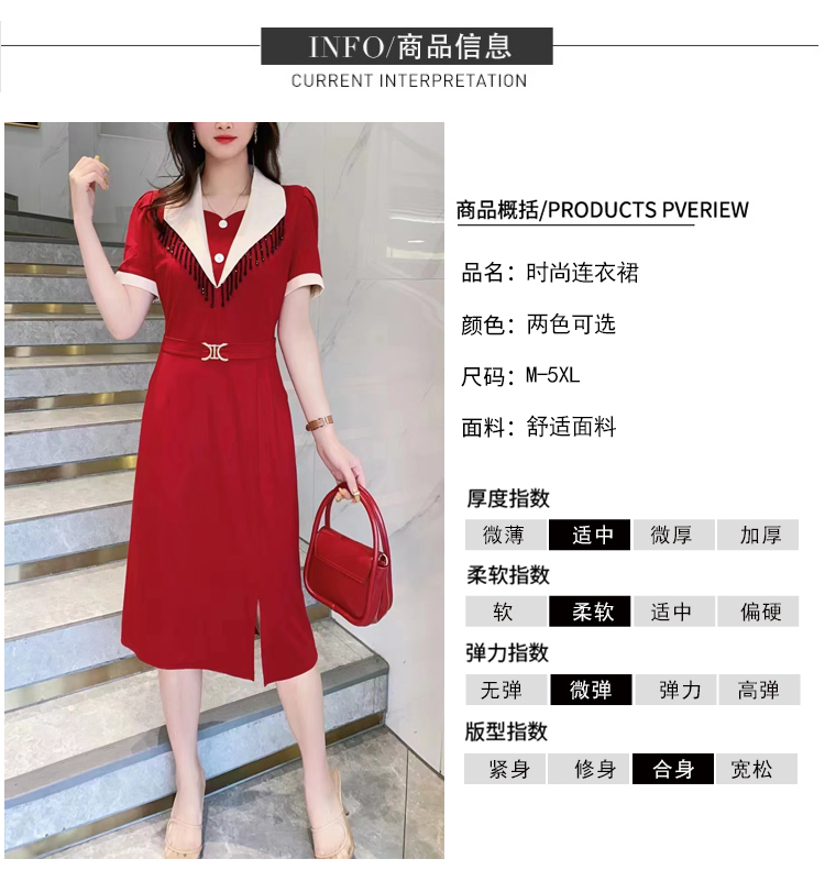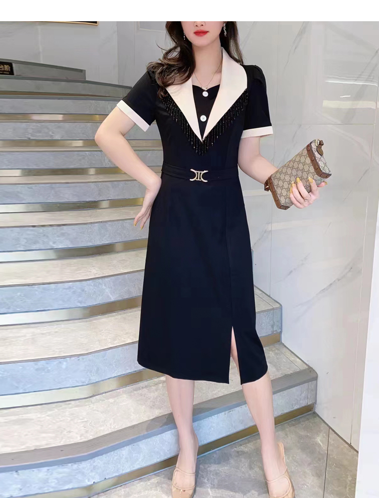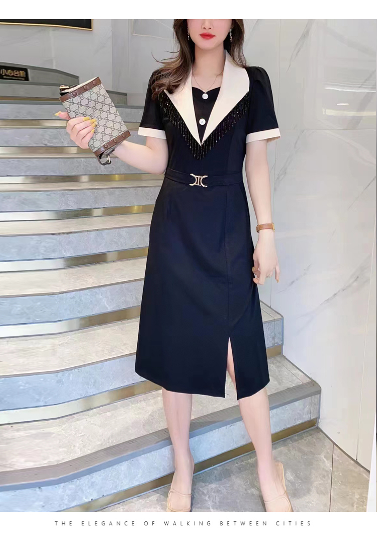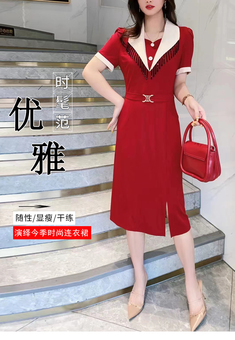 RM5715#时尚西装领连衣裙2023夏季新款洋气减龄短袖裙子