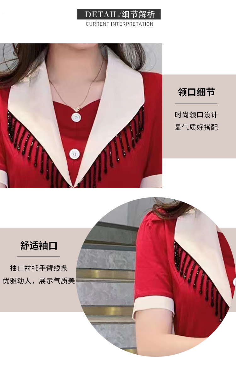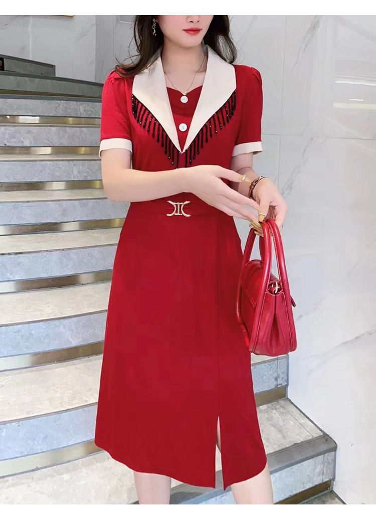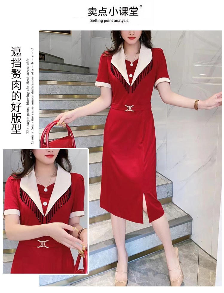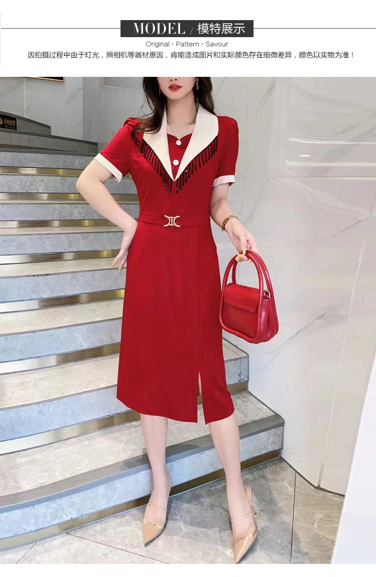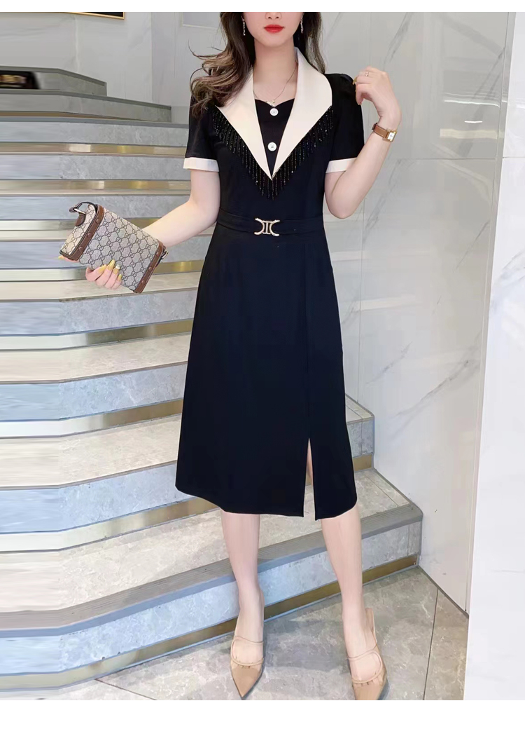 RM5715#时尚西装领连衣裙2023夏季新款洋气减龄短袖裙子