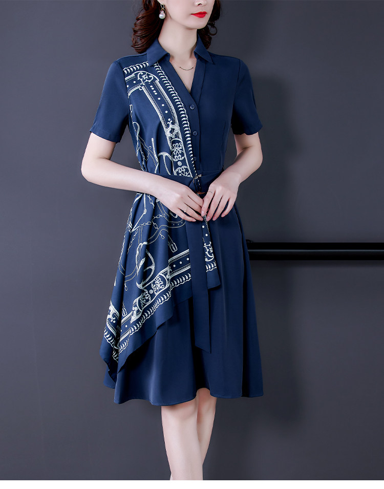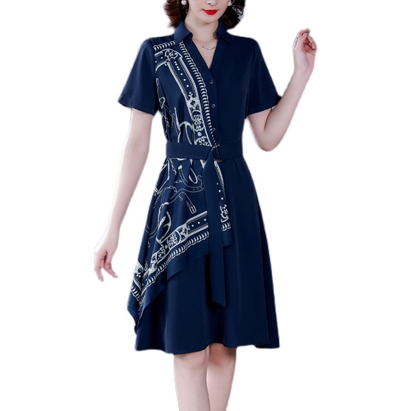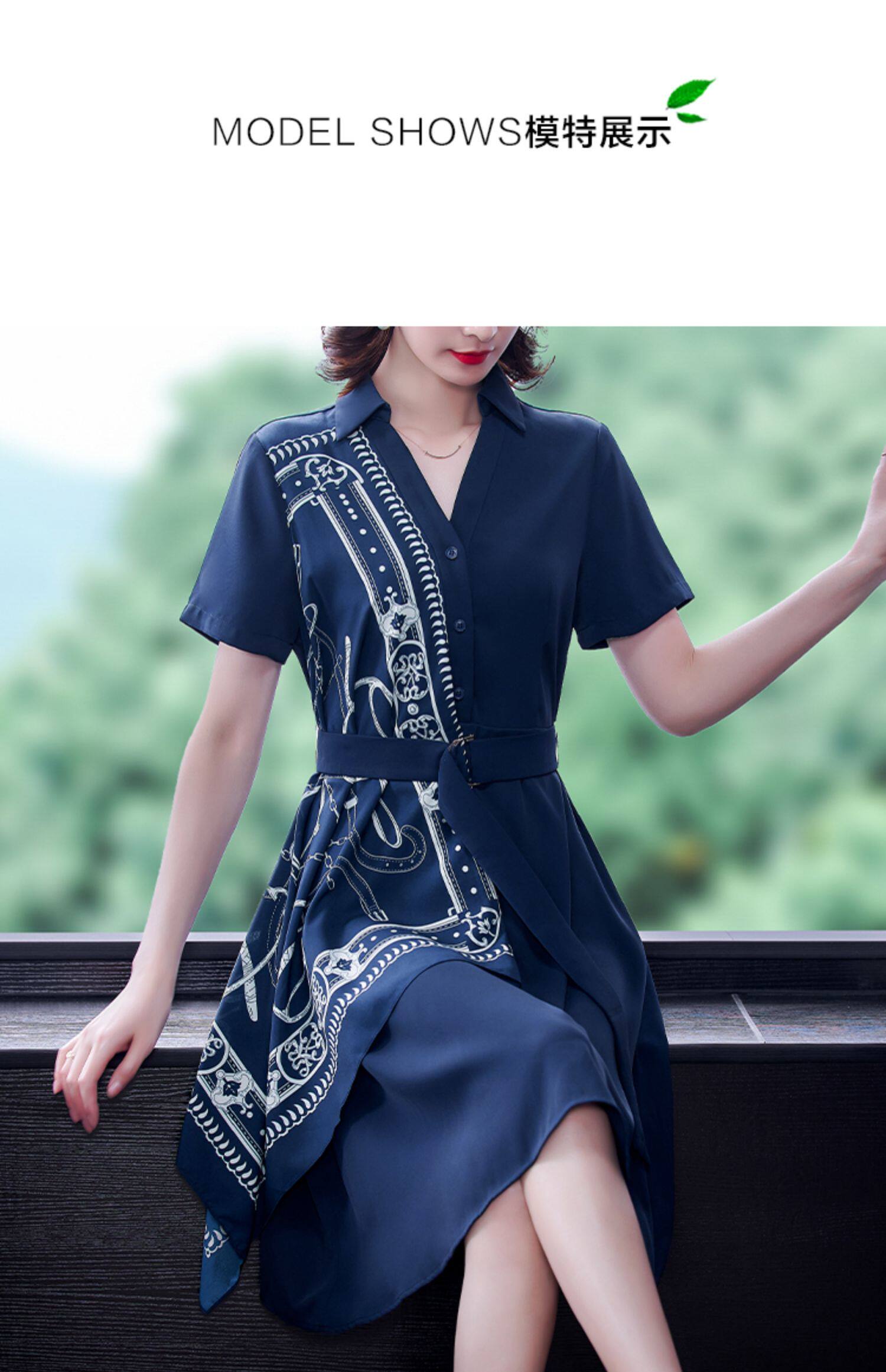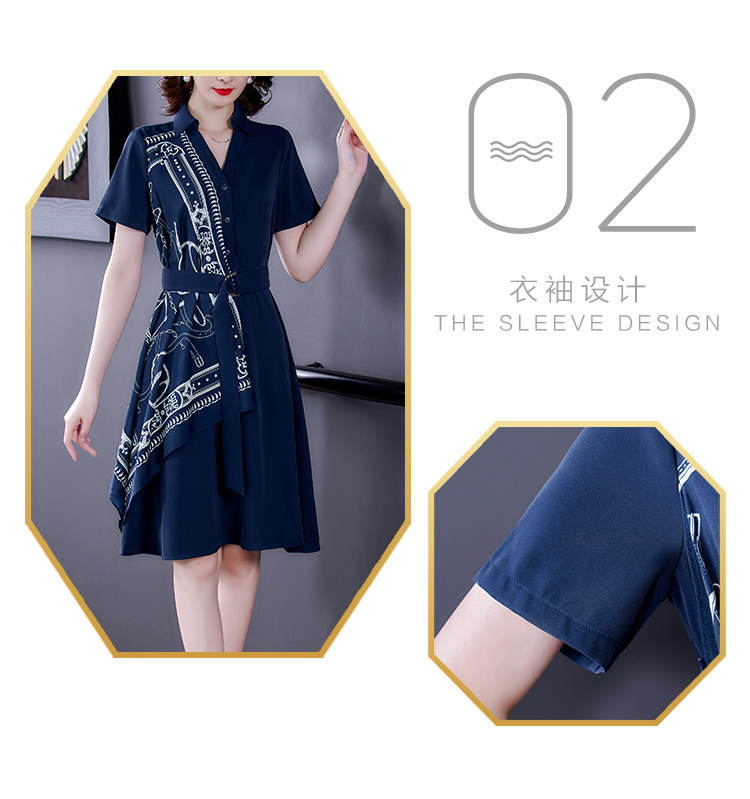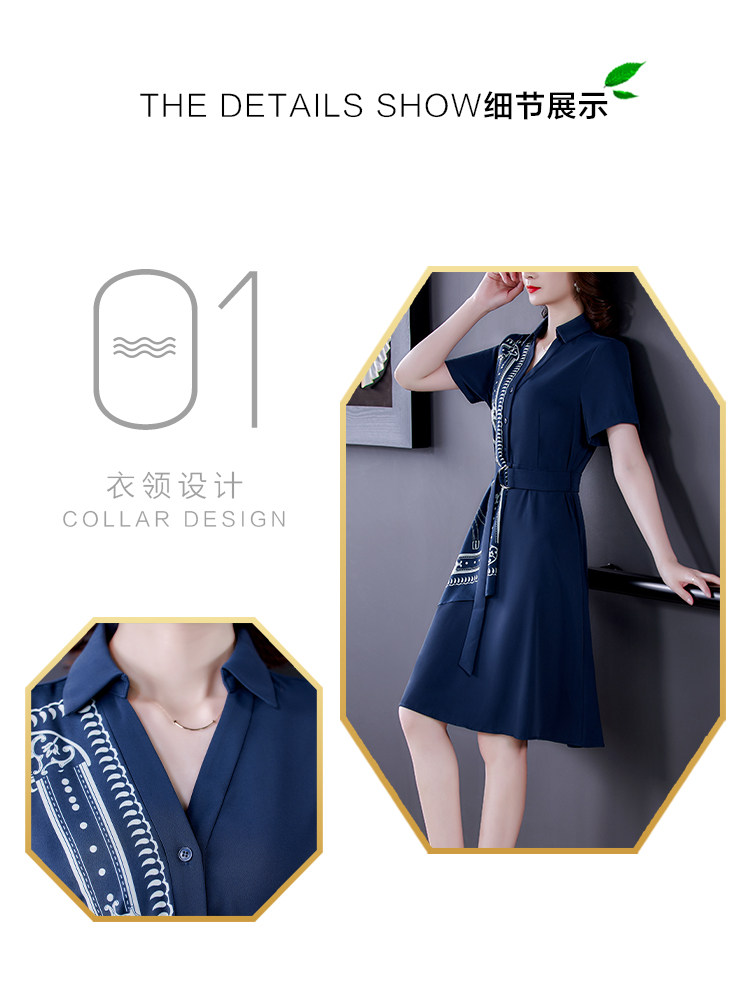 RM5730#收腰显瘦设计感连衣裙夏季短袖中国风拼接中长衬衫裙女