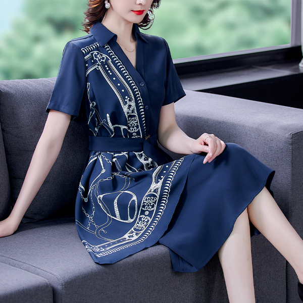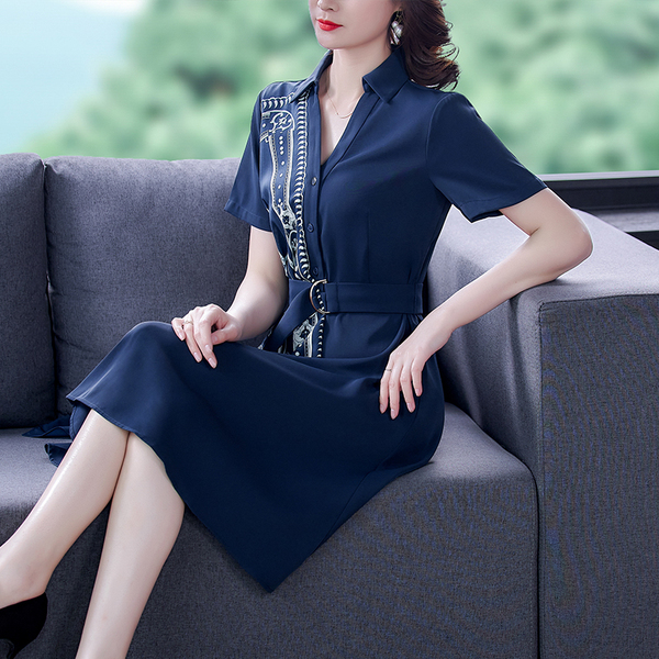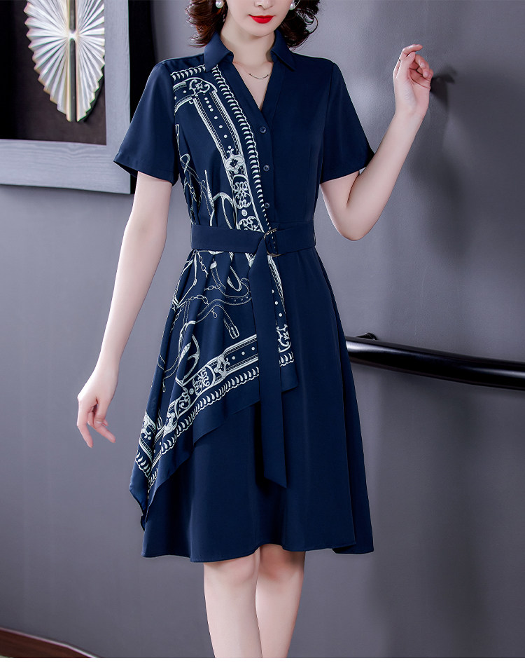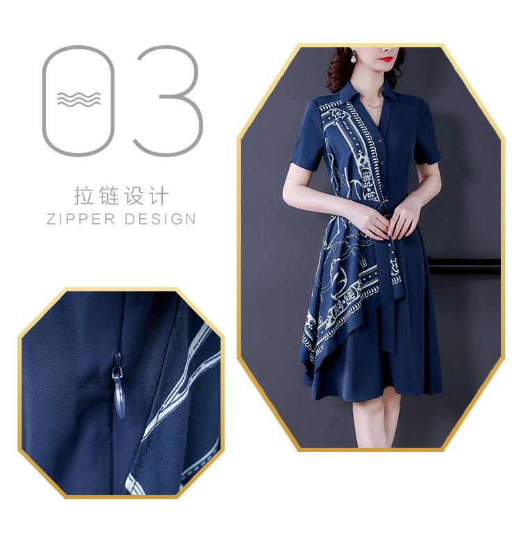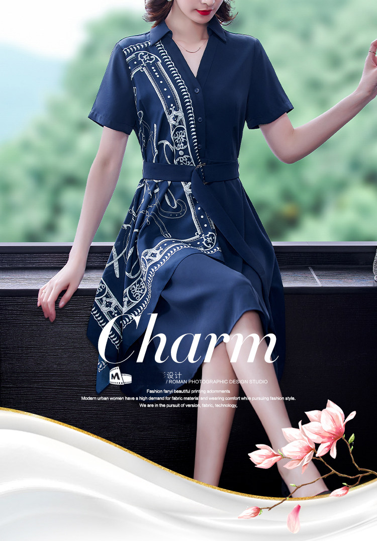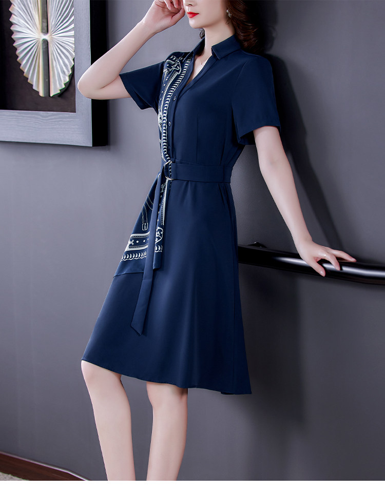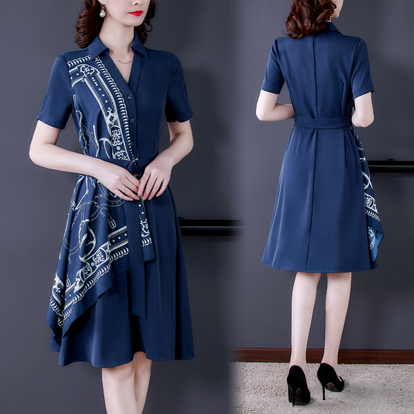 RM5730#收腰显瘦设计感连衣裙夏季短袖中国风拼接中长衬衫裙女