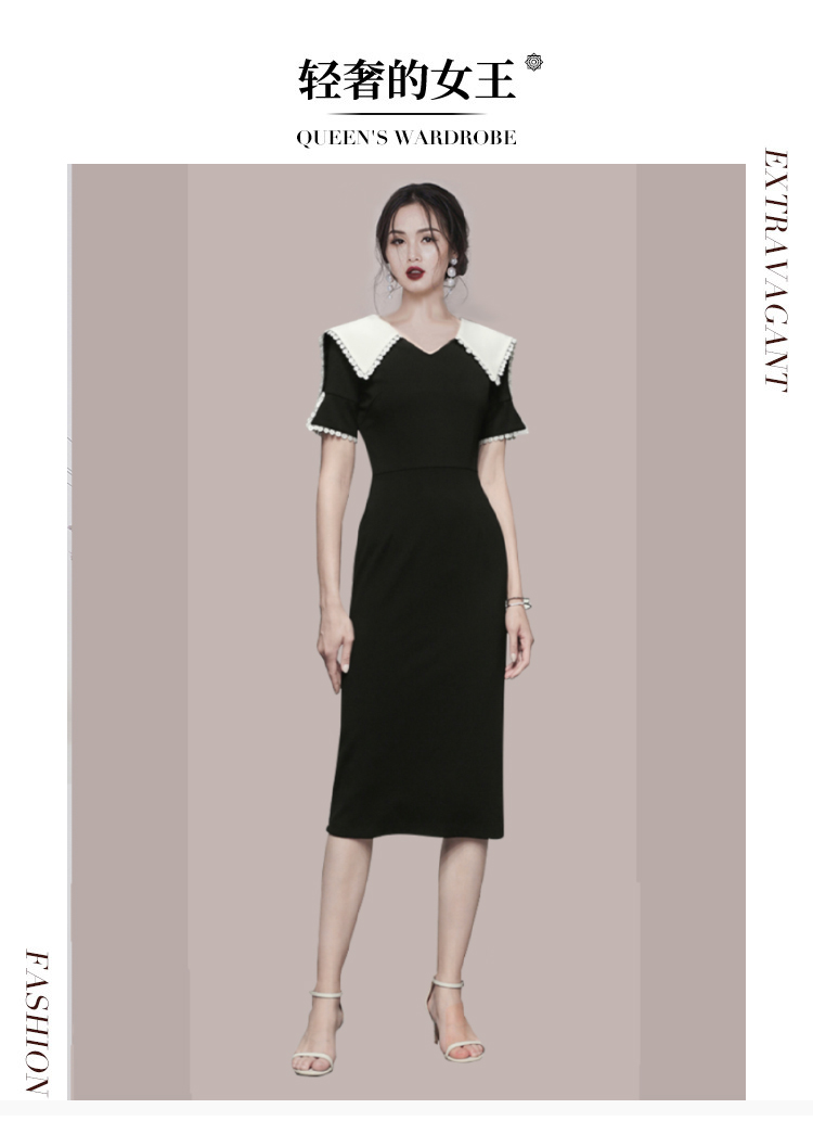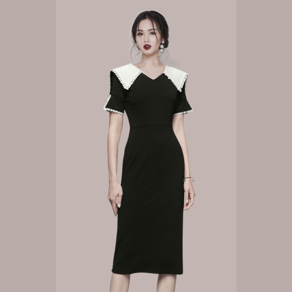 RM5734#韩版夏季小香风娃娃领修身纯色气质连衣裙