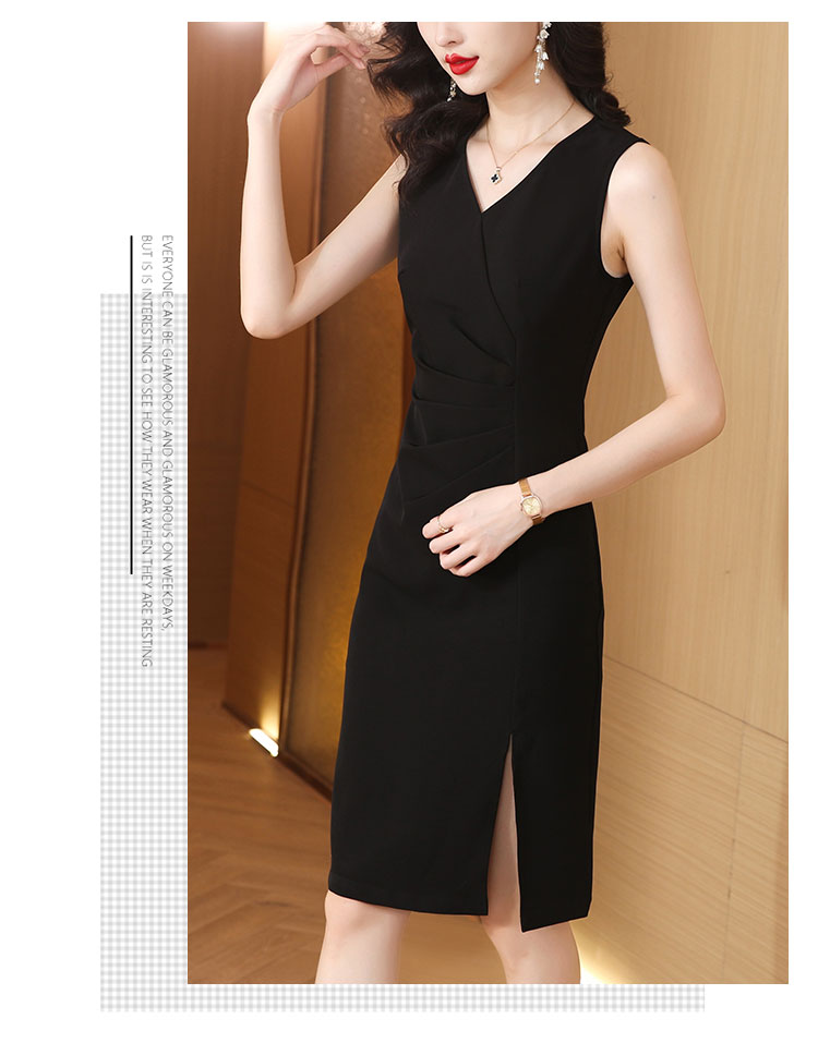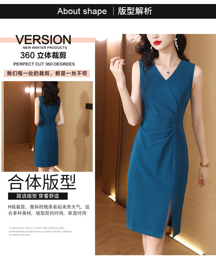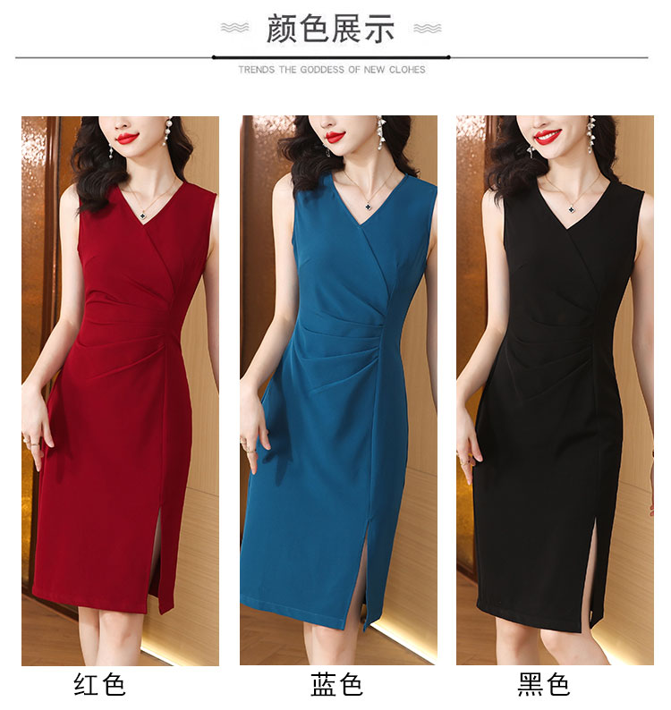RM5753#X型无袖夏季淑女超修身V领时尚简约风纯色2023夏季新品连衣裙女