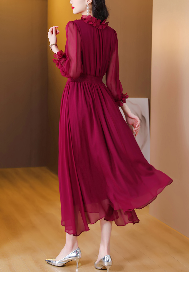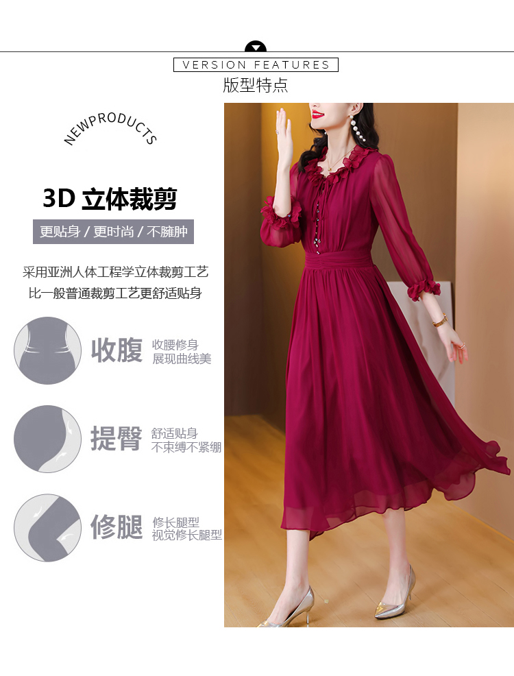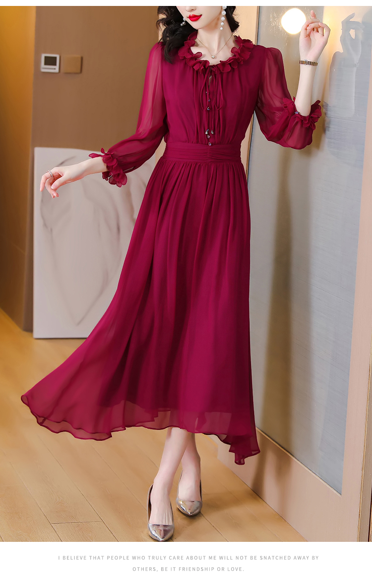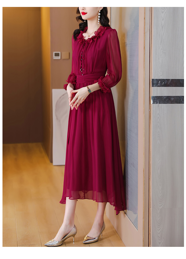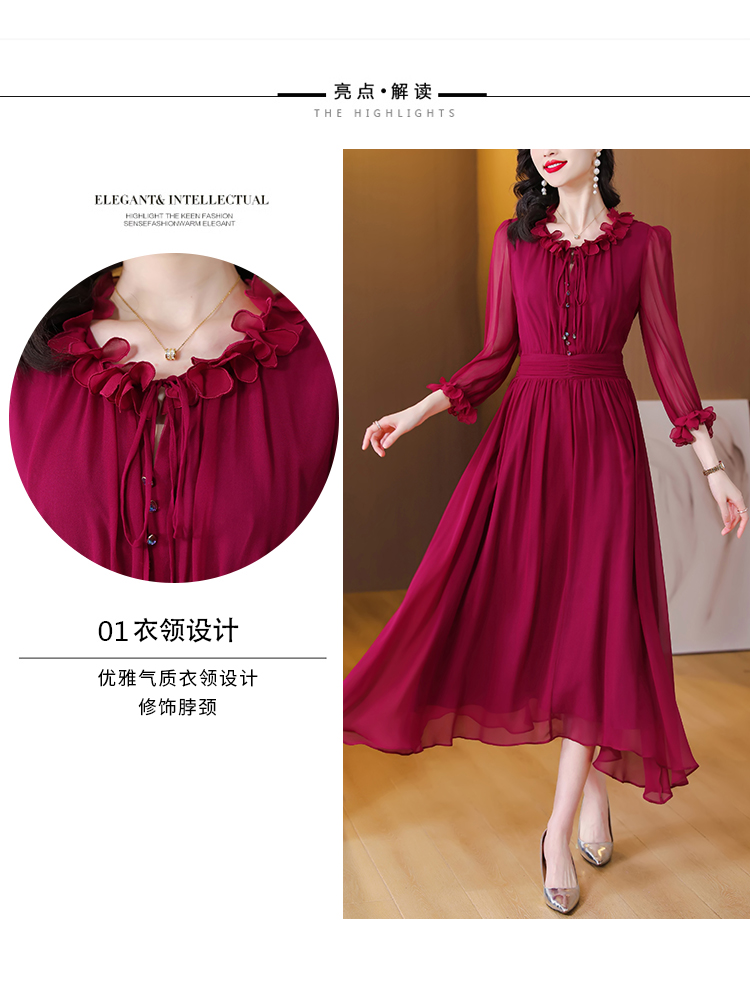 RM5778#纯色时尚奢华红色轻奢桑蚕丝连衣裙气质显瘦真丝裙女装