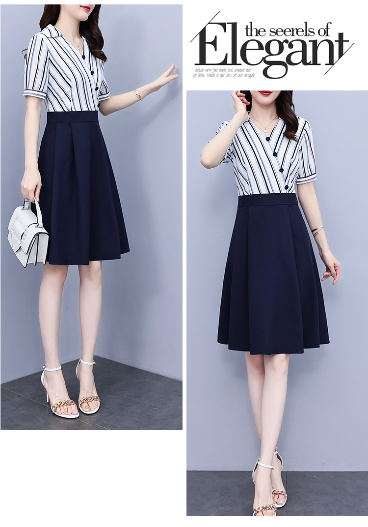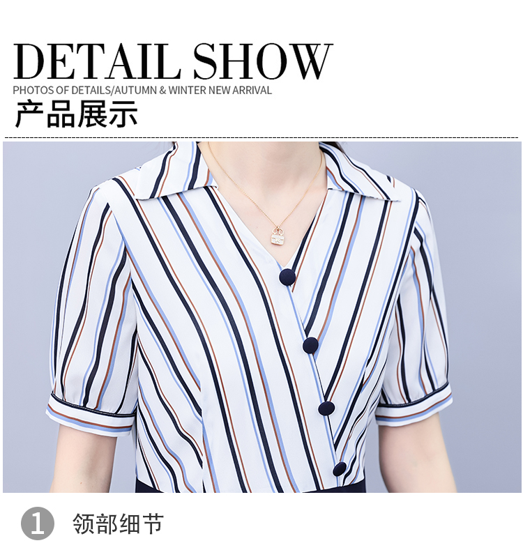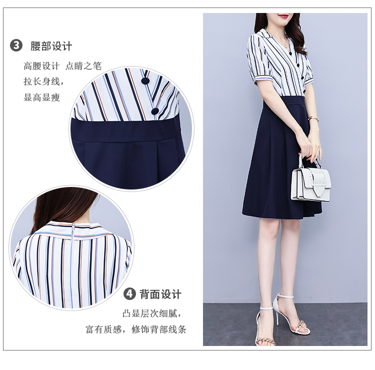 RM5793#雪纺连衣裙女夏装2023年新款中长款收腰显瘦职业高端气质V领裙子