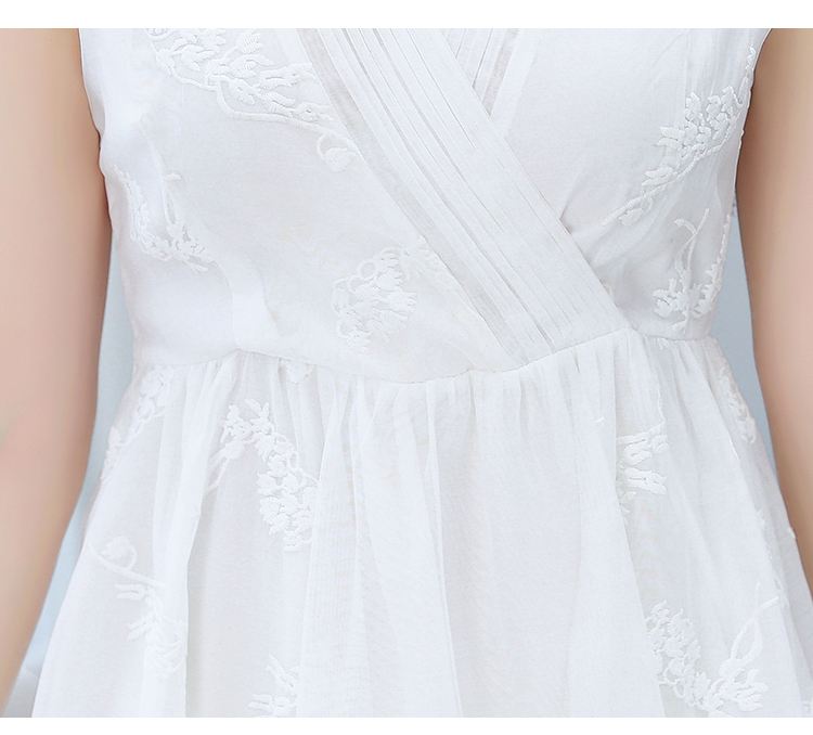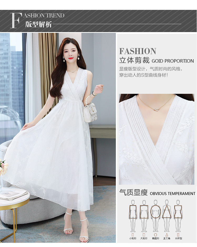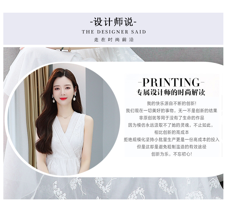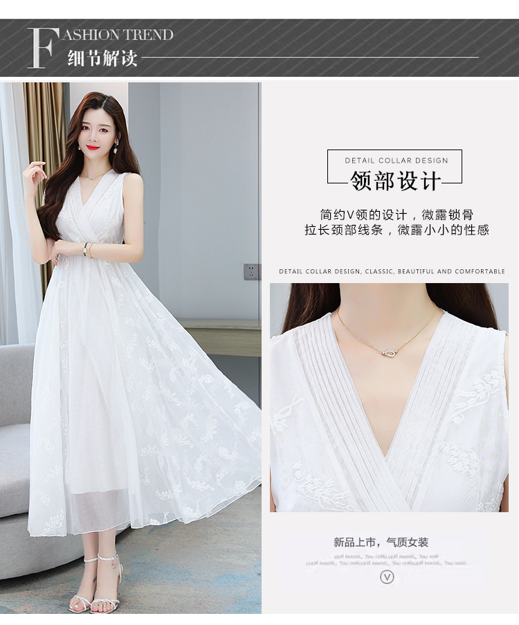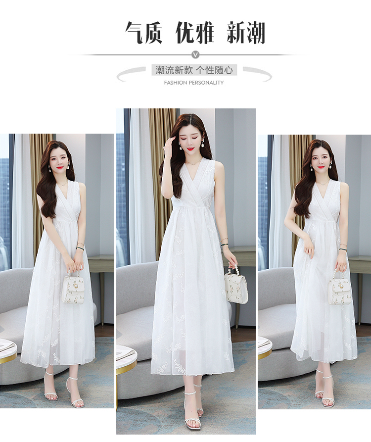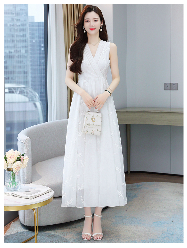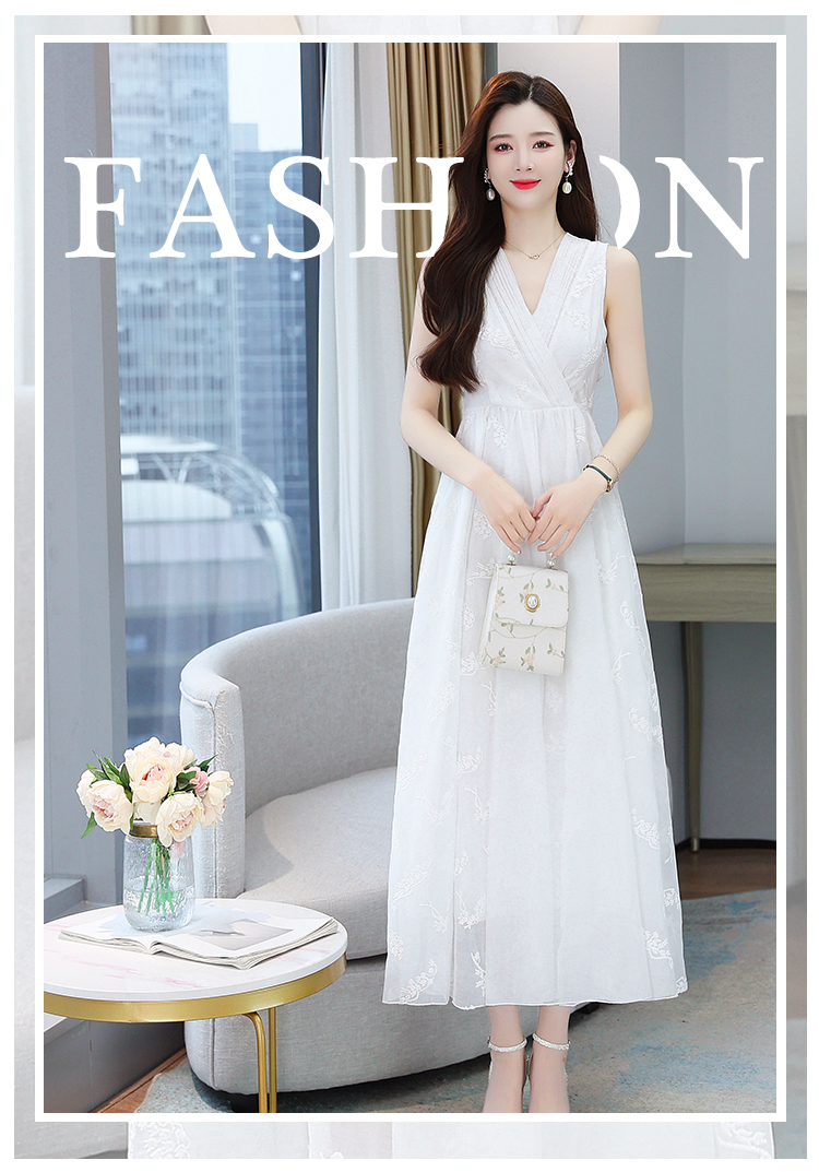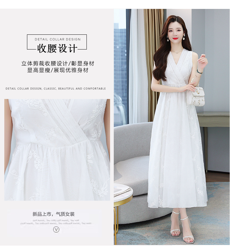 RM5841#刺绣碎花白色连衣裙女夏法式长裙子2023年夏季新款a字裙显瘦夏装